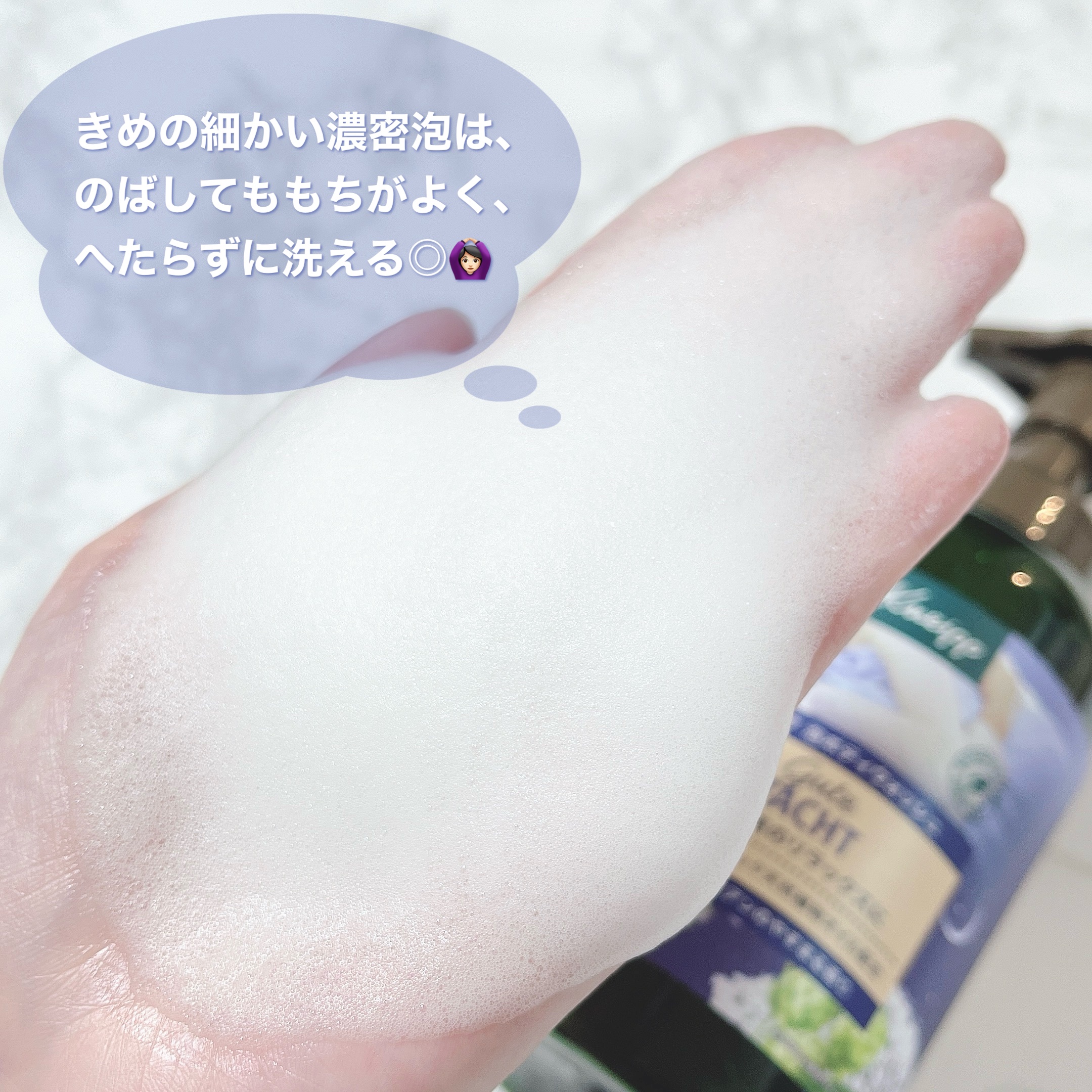 ほんのり甘いフローラルな香りに少しウッディな香りはまるで静かな森の中で深呼吸しているような、心地よい安らぎを感じる夜のリラックスタイムにぴったりの香りだよ。 きめ細かな濃密泡がへたりにくいから追い泡しなくても全身洗えたよ~。しっとりした洗い上がりなのにサラッとスッキリ✨ ビーガン対応、防腐剤フリー、合成ポリマーフリー、生分解性が高い成分を使用していて人にも環境にも優しい