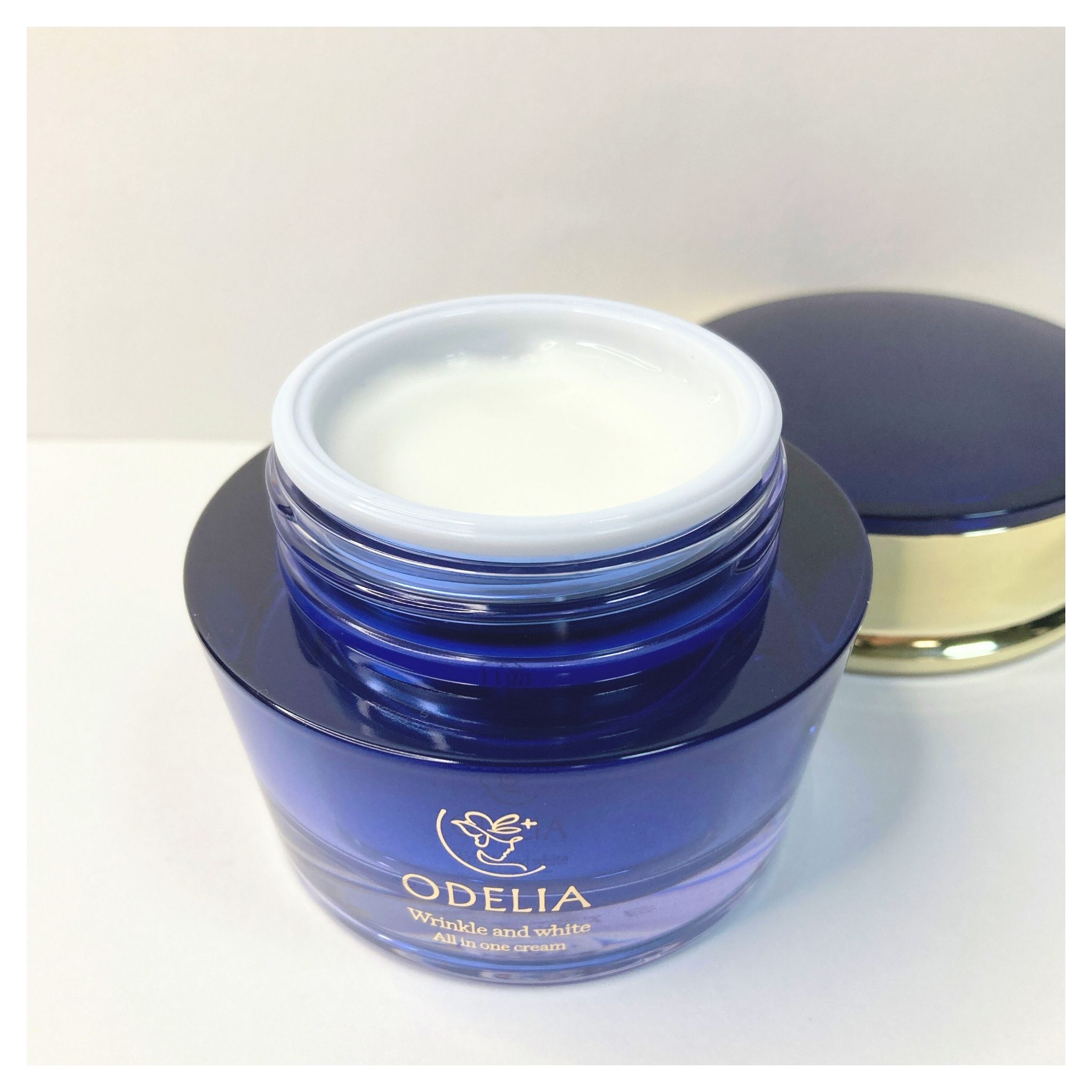 ディープブルーにゴールドの大人っぽいパッケージに入ったシワ改善、シミ予防のwの機能を兼ね備えたオールインワンクリームは、ゆるっとした乳液みたいな白いテクスチャーです。 みずみずしくしっとりするような使い心地で、香りは付いていないので、目元や鼻、口まわり、首までスキンケアしています。 50代の私が使っても手放したくなくなるような土台からのスキンケア。