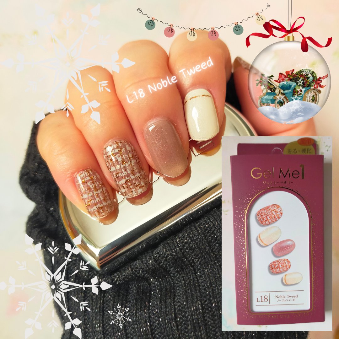本格ジェルネイルがすぐに完成 ジェルミーペタりーから秋冬限定デザインが出ました🥀⋆* クラシカルなツイードとグレージュ×ホワイトカラーの洗練された大人デザイン 秋色カラーのツイードが大人可愛い! ラメ感もキラッキラです⋆*