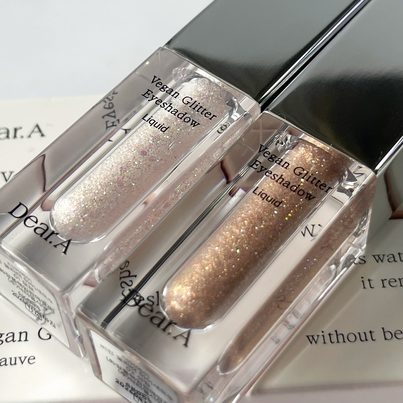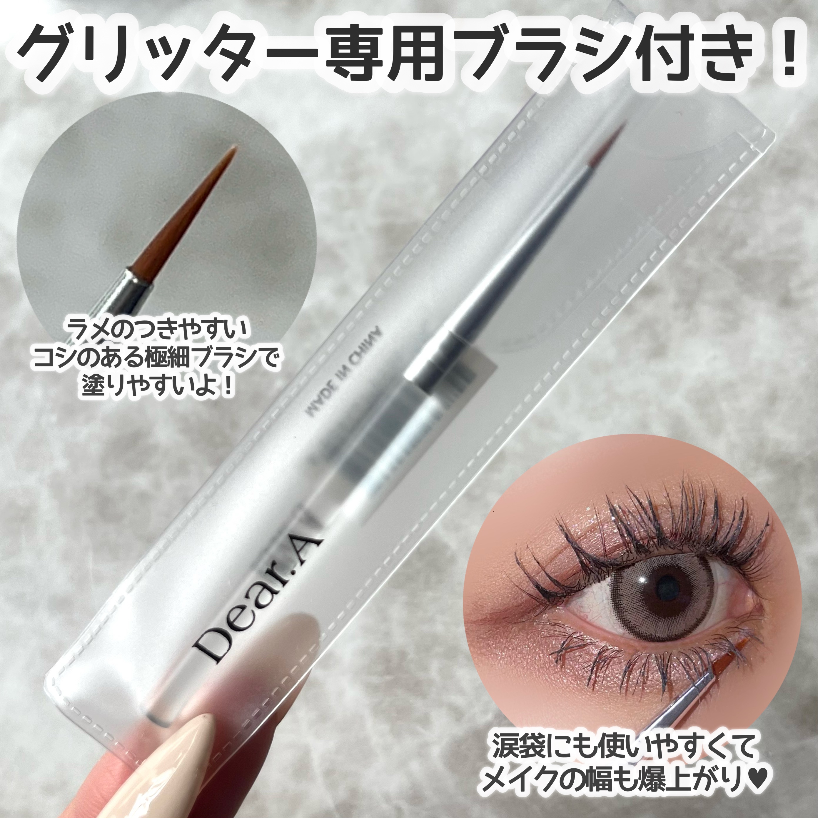 ガラスのような透明感のある光沢&カラー きらめくうるっとした目元に👀 53%以上のウォーターベースでラメ飛びもしづらいし、パキパキすることもない グリッター専用ブラシ付きだからポイントでのせたいときにも便利💡