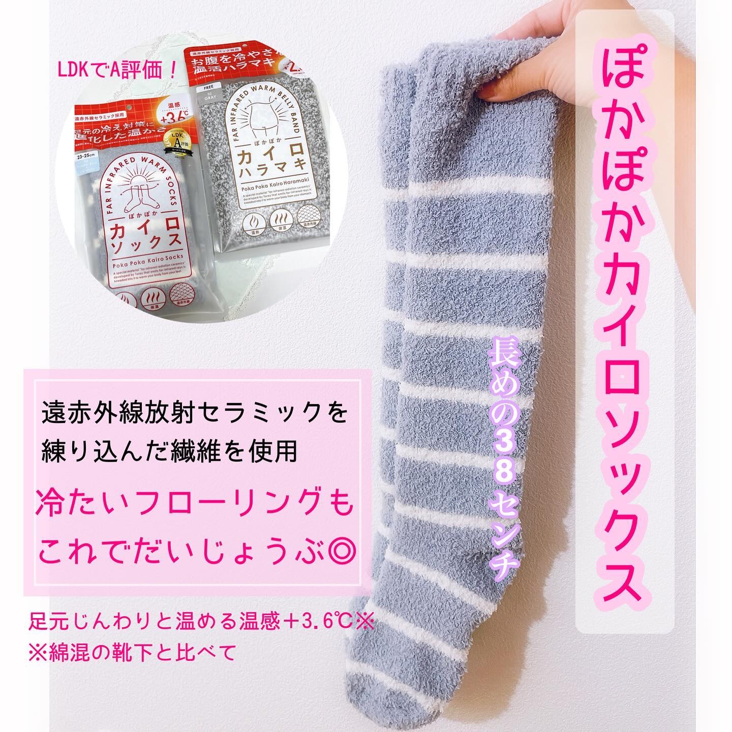 \ぽかぽか🏠/@kairo.socks様の辛口コスメ評価誌”LDK"でA評価!遠赤外線セラミック採用『ぽかぽかカイロソックス』赤外線放射セラミックを練り込んだ繊維を使用していて履くだけで足元の温感+3.6°C🧦ふくらはぎまでカバーする長さ(履...