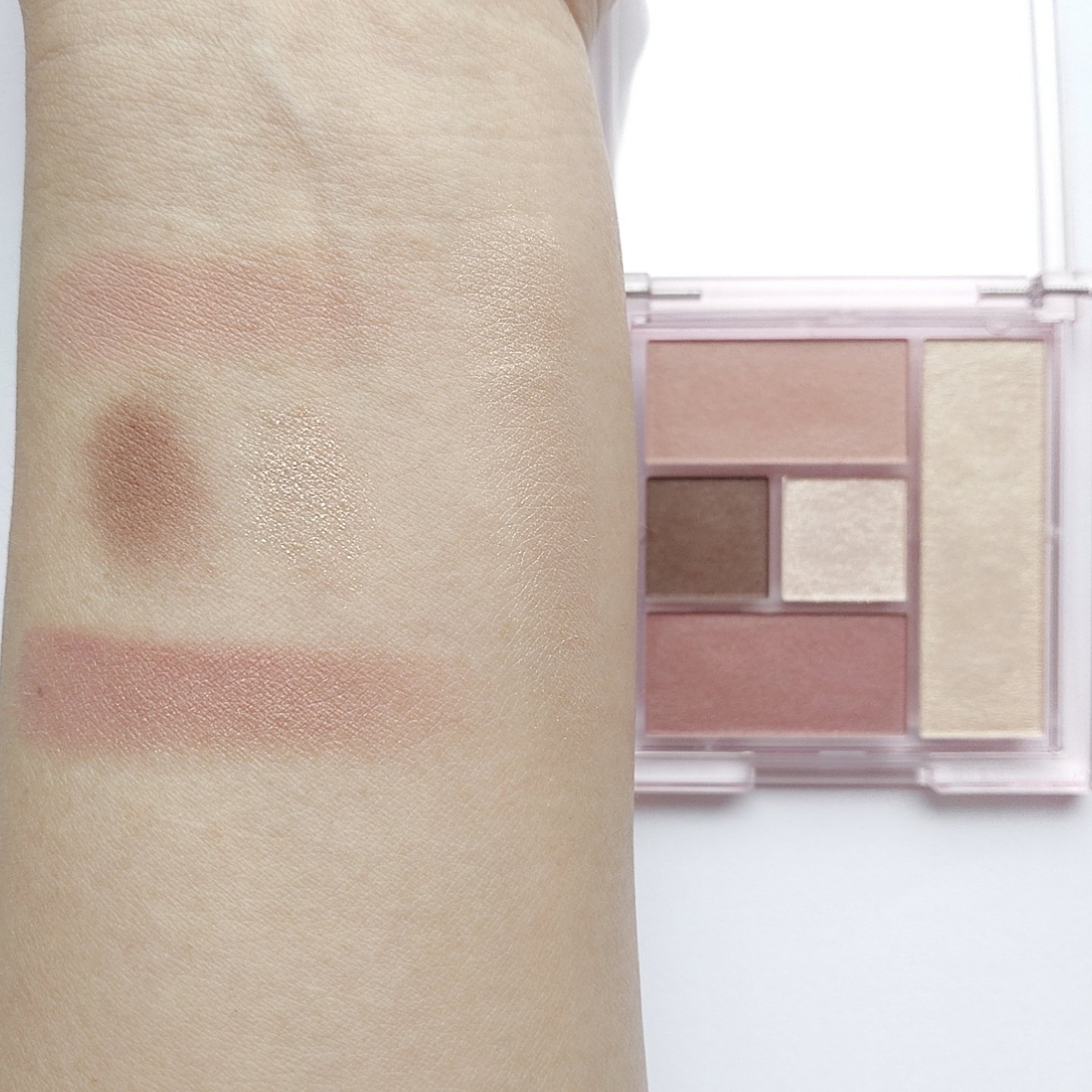 プチプラのクオリティじゃないっ!! 発売前からチェックしていたけれど、ここまで可愛いとは…😆 絶妙カラーで目もとのくすみを飛ばして*明るい印象に🩷 横割りグラデーションでメイクし、立体感をより出したかったので最後に1番左のカラーを上まぶたの真ん中と涙袋にのせています🙆 肌馴染みも良くて粉飛びも感じにくかったです💕 ブラウンの方も店頭に出てたら買おうかな💓