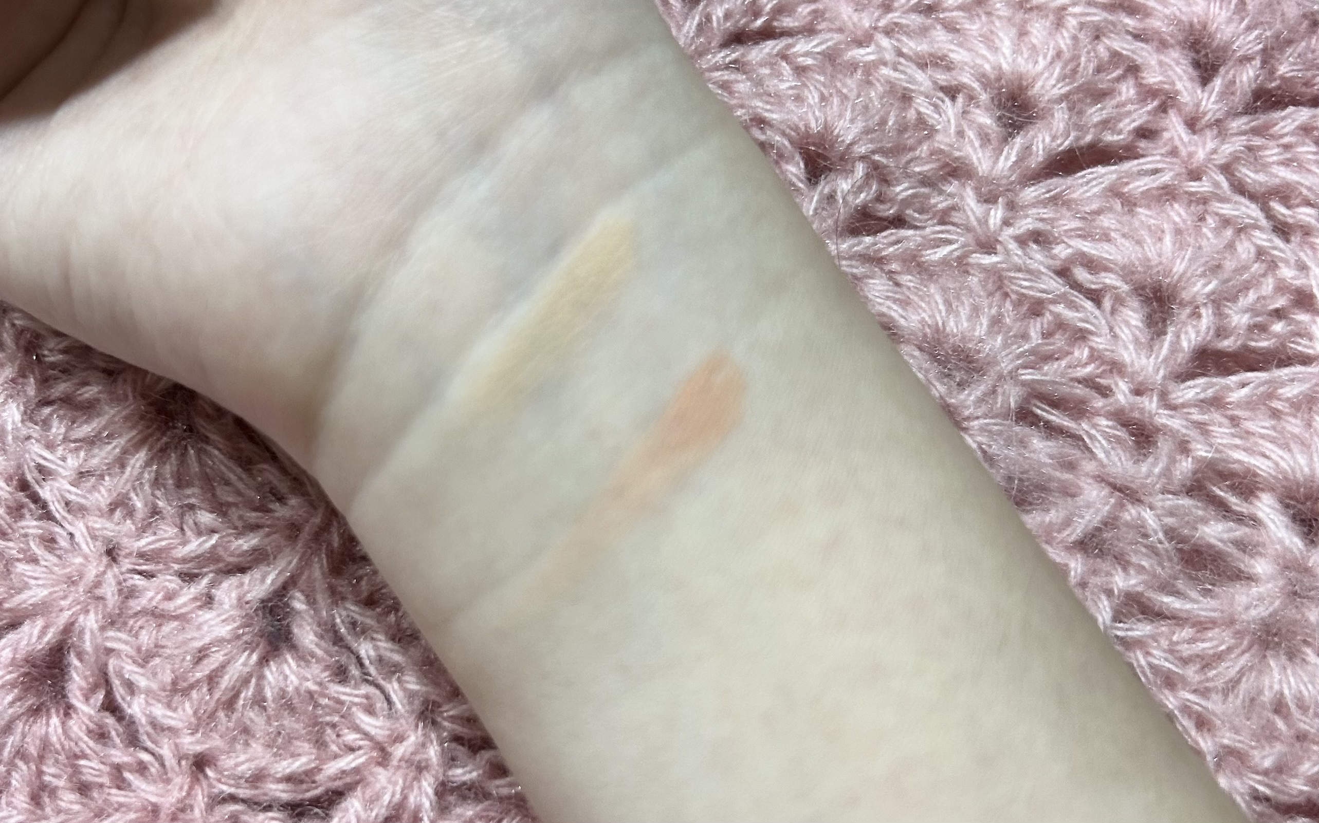 色腕に塗ると彩度低めのくすみピンクですが、実際に唇に乗せると思ったより青みがかったピンクで高発色だったかなと感じました。 艶々で、食事後もバサバサにはなりませんでした♡ ティントリップを初めて使用しましたが、一般的なリップより色持ちが良いと感じました!👏 ただ写真の様に、バームタイプのクレンジングを使用しましたが薄ら残ってます… 特別使用後に唇が荒れることはありませんでしたが、使用し続けるかは悩みどころです🥲