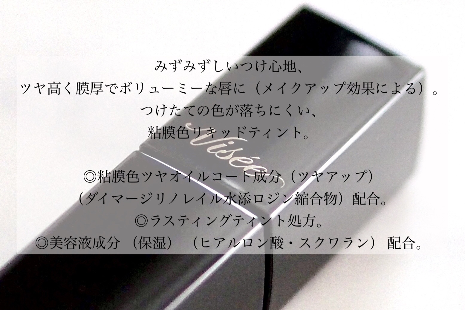ぷっくりボリューミィな唇 透明感と粘膜感のあるツヤやかな仕上がりが続く ⚪︎ツヤオイルコート成分配合 ⚪︎ラスティングティント処方 ⚪︎水系ベースにオイルを最高量配合 ため息こぼれる華やかな ローズレッドカラー