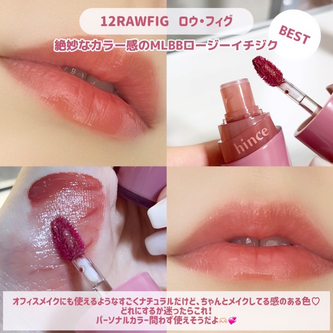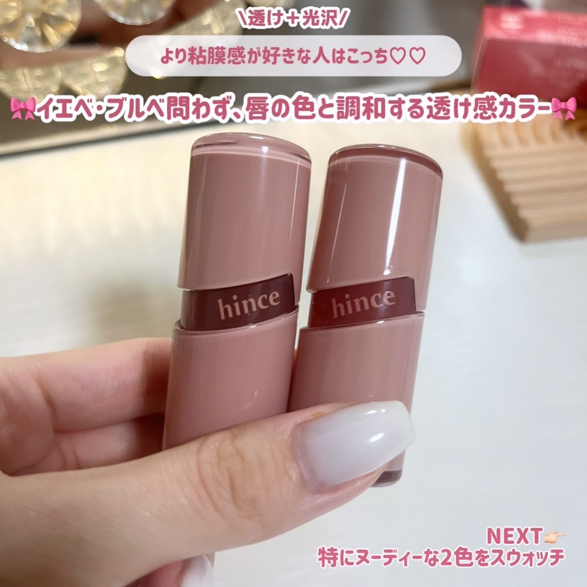 2024年ベスコス17冠受賞したヒンスのティントリップ…! テクスチャーは軽やかなんだけど、唇の上ではむっちりとしていてフィット感も高め☝️ 塗布後すぐにンパンパせず、10秒待つとより透明感あるカラーと光沢感を楽しめるとのこと🌟