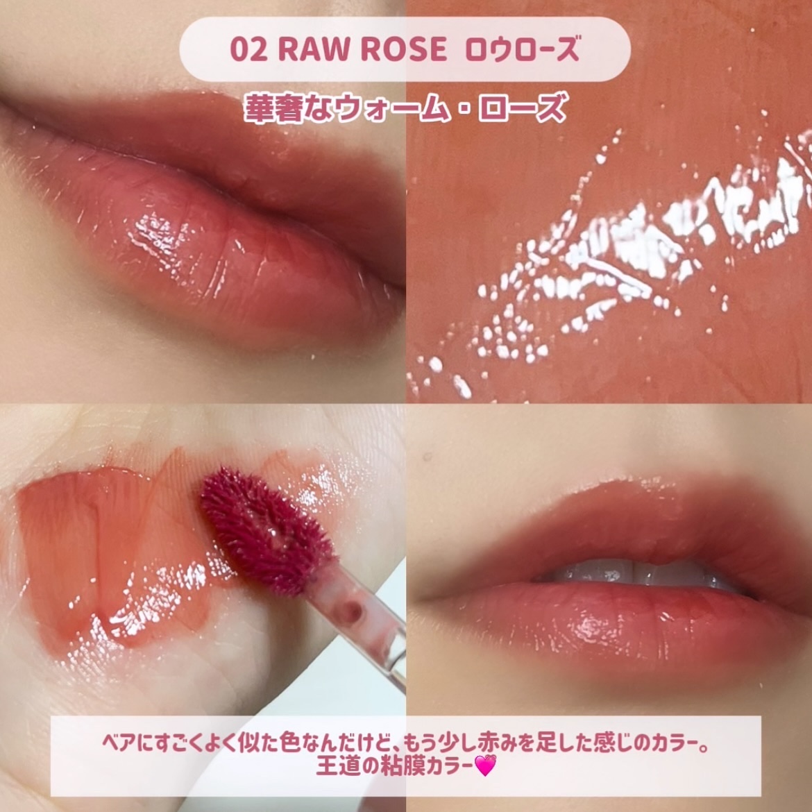 - ・塗ってンパンパせず10秒待つと、自然な光沢感が満ちてくる新感覚・レア膜ティント ・すっぴんでも調和する自然な光沢感 ・イエベ・ブルべ問わず本来の唇の色と調和する半透明カラー ・三重ヒアルロン酸配合で肌に潤いを与え乾燥を防いで長時間鮮やかなカラーをキープ