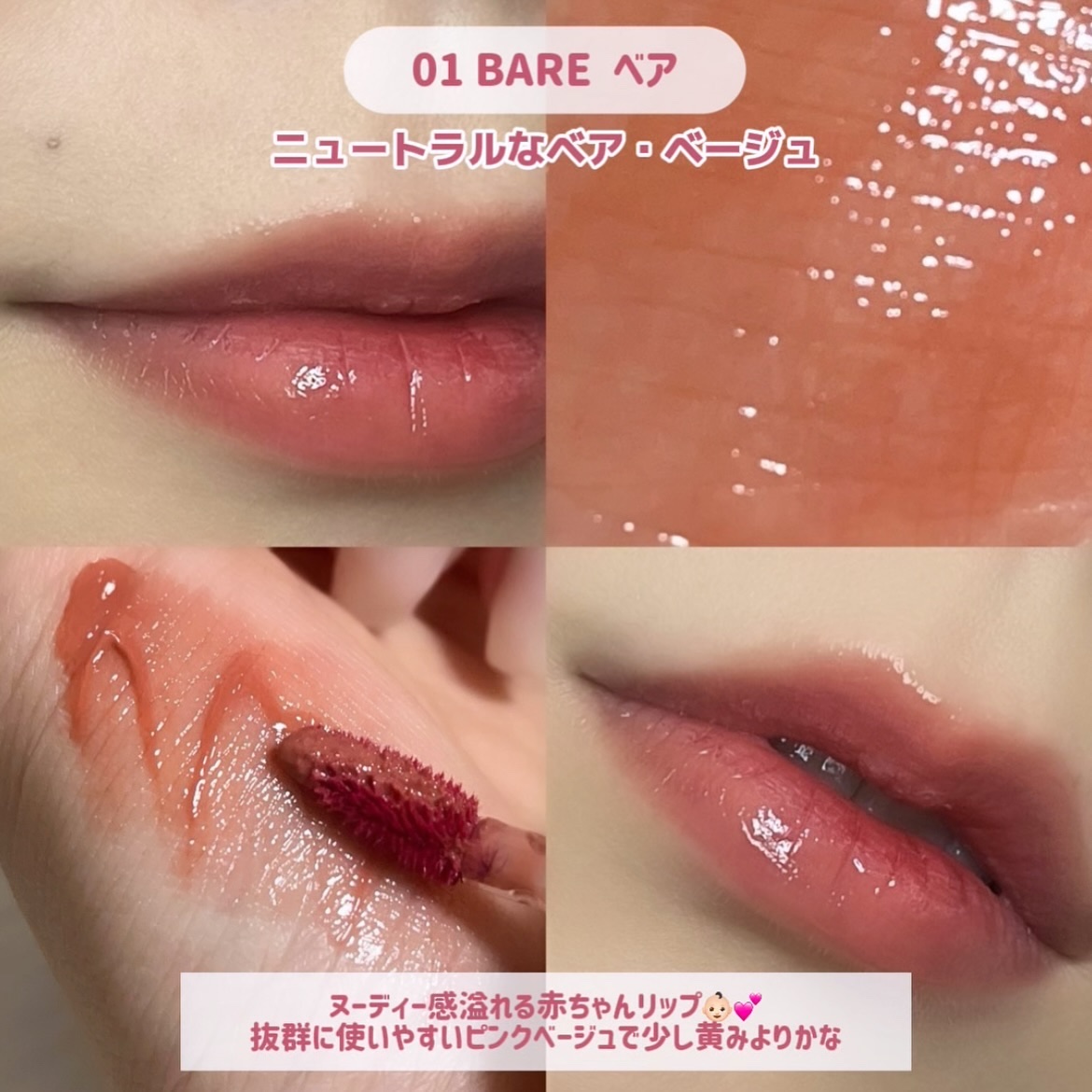 - <R001 ベア> 水、ジフェニルジメチコン、オクチルドデカノール、ビスジグリセリルポリアシルアジペート-2、リンゴ酸ジイソステアリル、トリメチルシロキシフェニルジメチコン、水添ポリイソブテン、ジグリセリン、ポリソルベート60、BG、セチルPEG/PPG-10/1ジメチコン、1,2-ヘキサンジオール、ペンチレングリコール、(アクリル酸ヒドロキシエチル/アクリロイルジメチルタウリンNa)コポリマー、セテアレス-20、スクワラン、フェノキシエタノール、酸化チタン、香料、エチルヘキシルグリセリン、黄5、赤227、イソステアリン酸ソルビタン、水酸化Al、ポリアクリル酸アンモニウム、酢酸トコフェロール、黄4、青1、ヒアルロン酸Na、(アルギニン/リシン)ポリペプチド、加水分解ヒアルロン酸、トコフェロール、アセチルヒアルロン酸Na、ソルビン酸 <R002 ロウローズ> 水、ジフェニルジメチコン、オクチルドデカノール、ビスジグリセリルポリアシルアジペート-2、リンゴ酸ジイソステアリル、トリメチルシロキシフェニルジメチコン、水添ポリイソブテン、ジグリセリン、ポリソルベート60、BG、セチルPEG/PPG-10/1ジメチコン、1,2-ヘキサンジオール、ペンチレングリコール、(アクリル酸ヒドロキシエチル/アクリロイルジメチルタウリンNa)コポリマー、セテアレス-20、スクワラン、フェノキシエタノール、酸化チタン、香料、エチルヘキシルグリセリン、黄5、赤227、イソステアリン酸ソルビタン、酢酸トコフェロール、水酸化Al、ポリアクリル酸アンモニウム、ヒアルロン酸Na、青1、加水分解ヒアルロン酸、(アルギニン/リシン)ポリペプチド、トコフェロール、アセチルヒアルロン酸Na、ソルビン酸 <R003 ロウプリコット> 水、ジフェニルジメチコン、オクチルドデカノール、ビスジグリセリルポリアシルアジペート-2、リンゴ酸ジイソステアリル、トリメチルシロキシフェニルジメチコン、水添ポリイソブテン、ジグリセリン、ポリソルベート60、BG、セチルPEG/PPG-10/1ジメチコン、1,2-ヘキサンジオール、ペンチレングリコール、(アクリル酸ヒドロキシエチル/アクリロイルジメチルタウリンNa)コポリマー、セテアレス-20、スクワラン、フェノキシエタノール、香料、エチルヘキシルグリセリン、酸化チタン、黄5、イソステアリン酸ソルビタン、赤227、酢酸トコフェロール、ヒアルロン酸Na、水酸化Al、ポリアクリル酸アンモニウム、加水分解ヒアルロン酸、青1、(アルギニン/リシン)ポリペプチド、トコフェロール、アセチルヒアルロン酸Na、ソルビン酸 <R004 フィーバー> 水、ジフェニルジメチコン、オクチルドデカノール、リンゴ酸ジイソステアリル、ビスジグリセリルポリアシルアジペート-2、トリメチルシロキシフェニルジメチコン、水添ポリイソブテン、ジグリセリン、ポリソルベート60、BG、セチルPEG/PPG-10/1ジメチコン、1,2-ヘキサンジオール、ペンチレングリコール、(アクリル酸ヒドロキシエチル/アクリロイルジメチルタウリンNa)コポリマー、セテアレス-20、スクワラン、フェノキシエタノール、香料、エチルヘキシルグリセリン、黄5、赤227、イソステアリン酸ソルビタン、酢酸トコフェロール、ヒアルロン酸Na、加水分解ヒアルロン酸、(アルギニン/リシン)ポリペプチド、トコフェロール、アセチルヒアルロン酸Na、ソルビン酸 <R005 ハイビスカス> 水、ジフェニルジメチコン、オクチルドデカノール、ビスジグリセリルポリアシルアジペート-2、リンゴ酸ジイソステアリル、トリメチルシロキシフェニルジメチコン、水添ポリイソブテン、ジグリセリン、ポリソルベート60、BG、セチルPEG/PPG-10/1ジメチコン、1,2-ヘキサンジオール、ペンチレングリコール、アクリル酸ヒドロキシエチル/アクリロイルジメチルタウリンNa)コポリマー、セテアレス-20、スクワラン、フェノキシエタノール、香料、エチルヘキシルグリセリン、赤227、黄5、イソステアリン酸ソルビタン、赤104(1)、酢酸トコフェロール、ヒアルロン酸Na、加水分解ヒアルロン酸、(アルギニン/リシン)ポリペプチド、トコフェロール、アセチルヒアルロン酸Na、ソルビン酸 <R006 ロウグレープ> 水、ジフェニルジメチコン、ビスジグリセリルポリアシルアジペート-2、リンゴ酸ジイソステアリル、オクチルドデカノール、トリメチルシロキシフェニルジメチコン、水添ポリイソブテン、ジグリセリン、ポリソルベート60、BG、セチルPEG/PPG-10/1ジメチコン、1,2-ヘキサンジオール、ペンチレングリコール、(アクリル酸ヒドロキシエチル/アクリロイルジメチルタウリンNa)コポリマー、セテアレス-20、スクワラン、酸化チタン、フェノキシエタノール、香料、エチルヘキシルグリセリン、黄5、赤227、イソステアリン酸ソルビタン、水酸化Al、ポリアクリル酸アンモニウム、酢酸トコフェロール、ヒアルロン酸Na、青1、加水分解ヒアルロン酸、(アルギニン/リシン)ポリペプチド、トコフェロール、アセチルヒアルロン酸Na、ソルビン酸 <R007 チル> 水、ジフェニルジメチコン、オクチルドデカノール、ビスジ