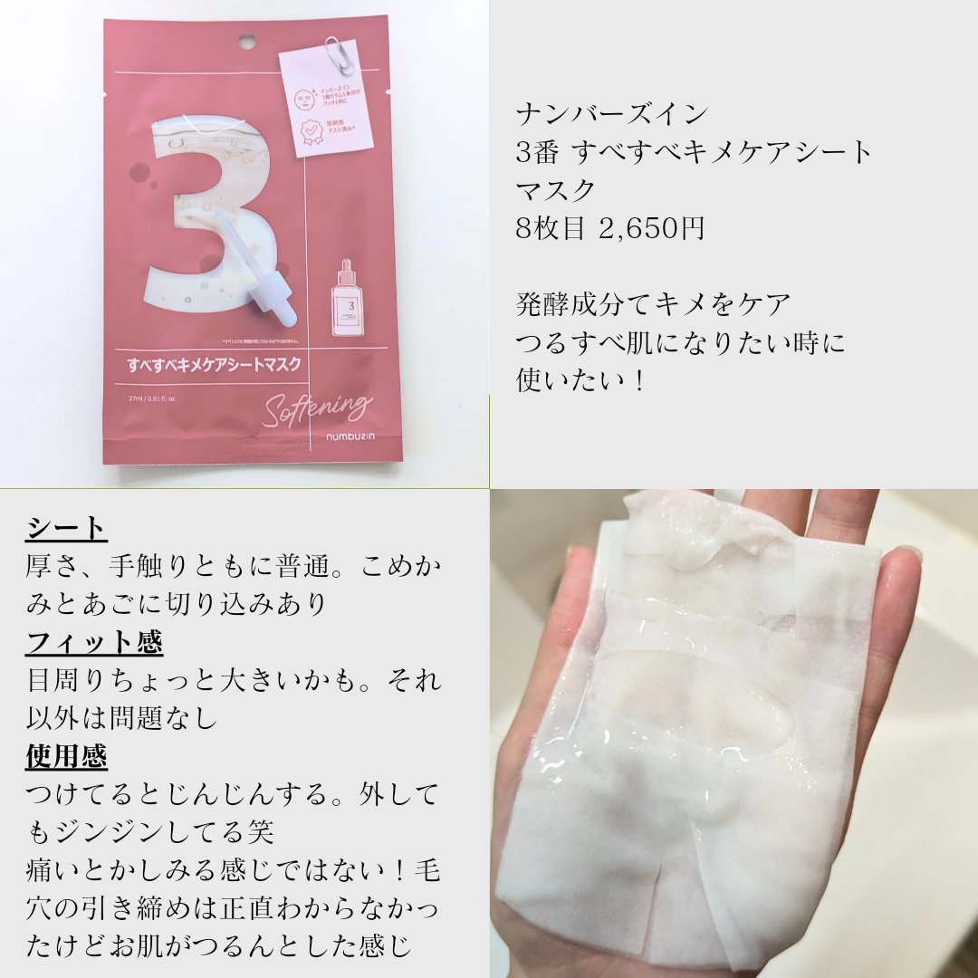 numbuzin 3番 すべすべキメケアシートマスク | 290円〜 |