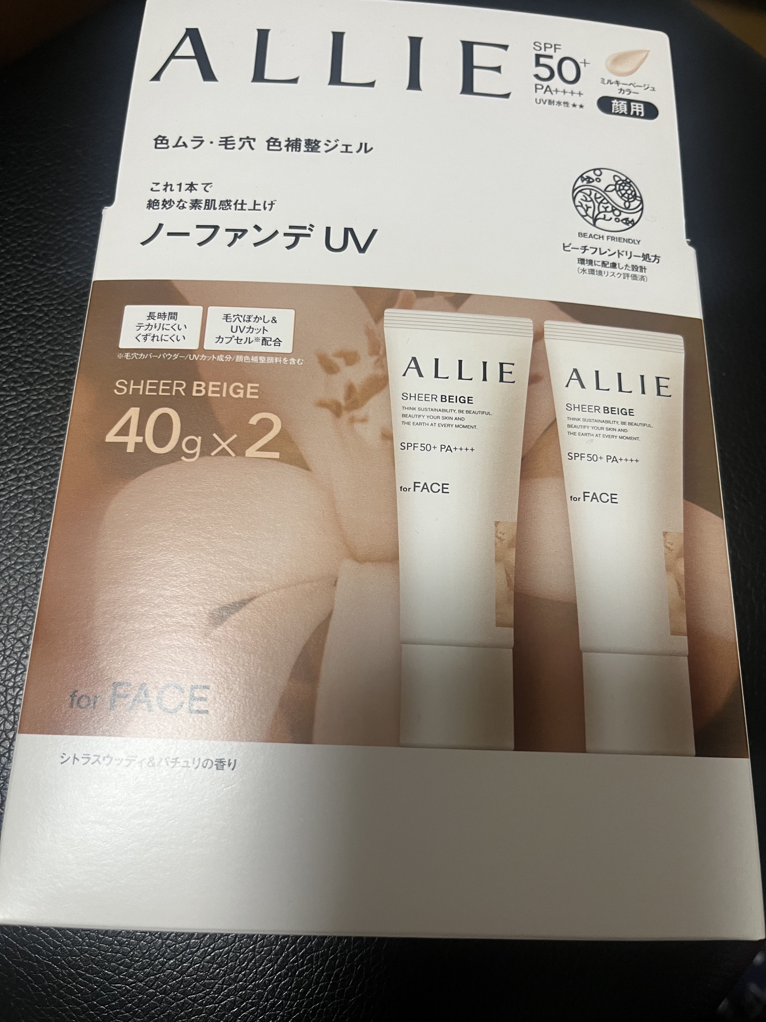 - 世界を想う 美しさつづく*1 日やけ止め おでかけも、マスクを外す機会も増える毎日に。 一部の国・地域・ビーチの規制に配慮した設計のビーチフレンドリー処方。 これ 1 本で、UV カット&顔色補整効果でクマ・くすみ・色ムラまでカバー! テカりにくく、くずれにくいノーファンデ UV*2 【ENNUI PURPLE】 くすみや毛穴をカバー 儚げな透明感のある顔印象続く 澄んだ気分を誘う 紫陽花しずく&セージの香り 【SUNNY APRICOT】 クマや毛穴をカバー いきいきとした血色感のある顔印象つづく 思わず出かけたくなる アプリコット&金木犀の香り 【SHERR BEIGE】 色ムラや毛穴をカバー 均一で抜け感のある顔印象つづく 自然で飾らない シトラスウッディ&パチュリの香り ●一部の国・地域・ビーチの規制に配慮した設計の「ビーチフレンドリー処方」 ●SPF50+・PA++++ ●汗・水 こすれに強く落ちにくい フリクションプルーフ・スーパーウォータープルーフ ●ベタつきにくい感触がつづく ●テカりにくくキレイな肌仕上がりがつづく ●環境に配慮した素材を使用したパッケージ採用 ●美容液成分(保湿)ヒアルロン酸Na配合 ●顔用 ●普段のメイククレンジングで落とせる ●マスク・タオル等につきにくい ●化粧下地効果 *1 スキンケア効果またはメイクアップ効果による肌仕上がりのこと *2 ファンデーション未使用時でも、自然なベースメイクが仕上がる日やけ止めのこと *3 チリ・ほこり・PM2.5・花粉等すべての微粒子汚れの付着を防ぐわけではありません 01:ENNUI PURPLE パープル 02:SUNNY APRICOT アプリコットピンク 03:SHEER BEIGE ミルキーベージュ