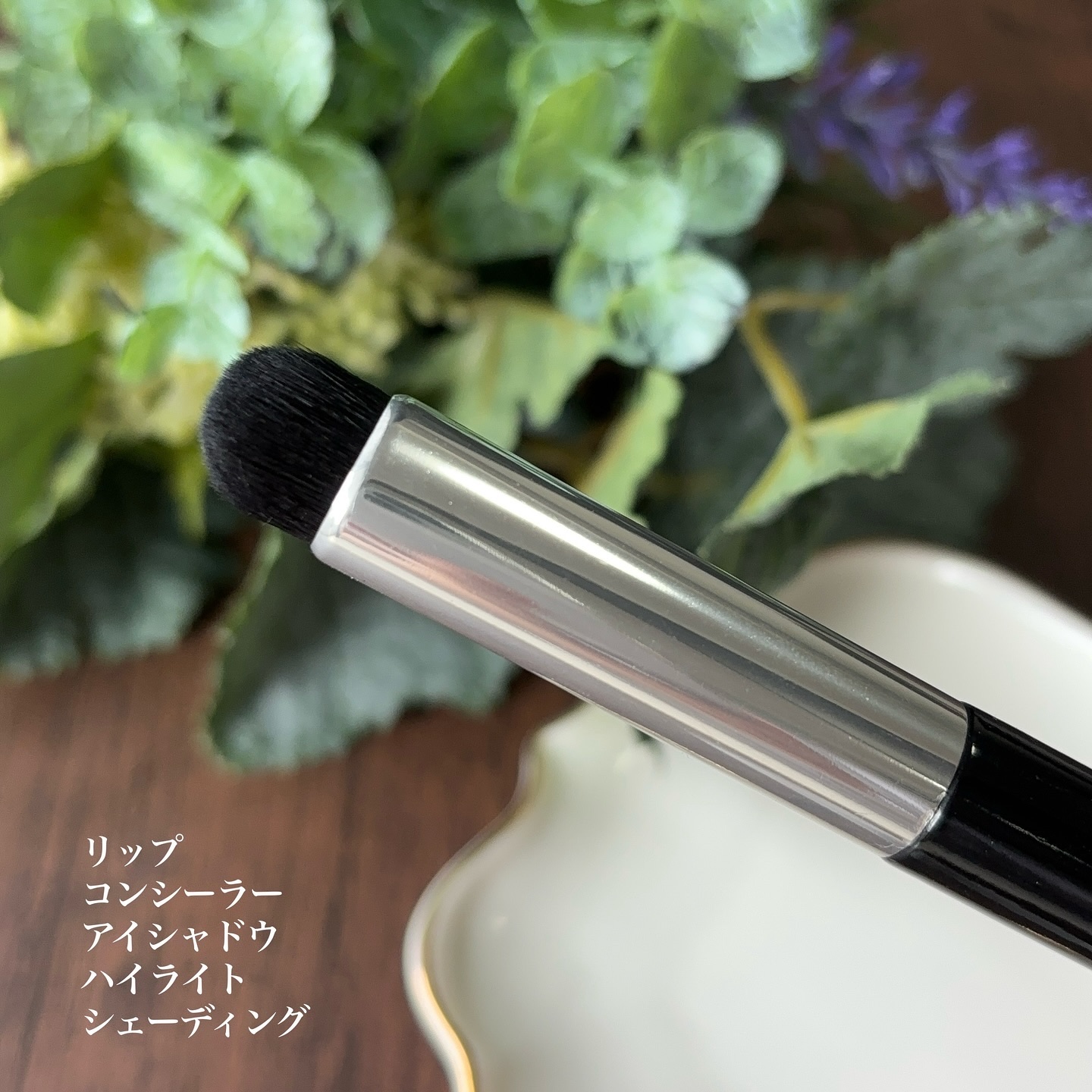 意外と柔らかめでコシがあまりないので、アイシャドウは色づきが薄く正直不向きに感じた。 リップは指塗りと仕上がり似てる。(代用きく○) こちらのほうが色をしっかり残したままぼかせる・ブラシの範囲が広いので大部分をぼかしたい時に便利という感じ。 私はグラデリップをする時やクリームチークを塗る時などに丸型と使い分けようと思います❁