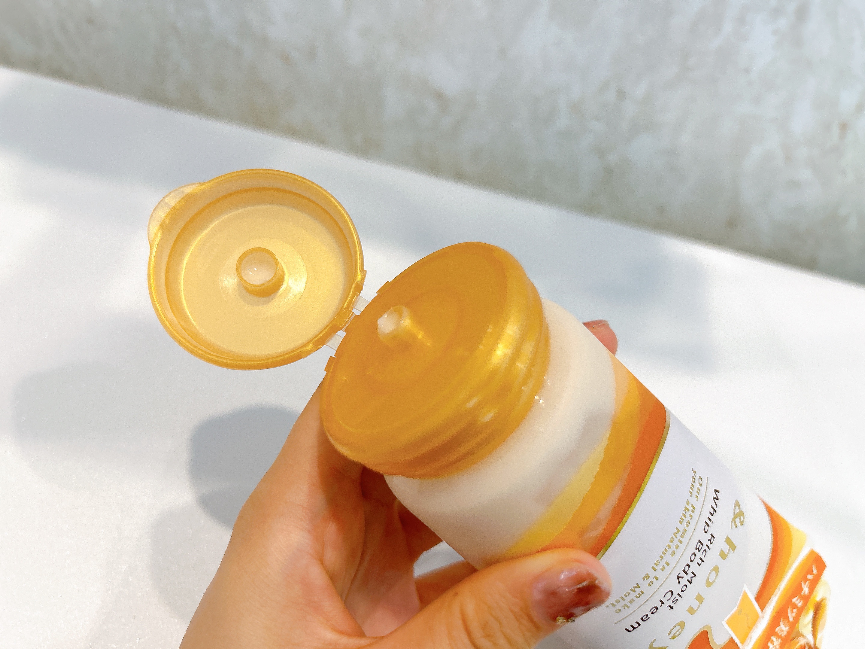 濃蜜ハチミツ美容で翌朝までしっとりなめらか肌へ♡ 誕生、ハチミツホイップボディクリーム。 90%以上が「美肌保湿成分」だから翌朝までうるうる。 甘いハニーとローズの女性らしい香り