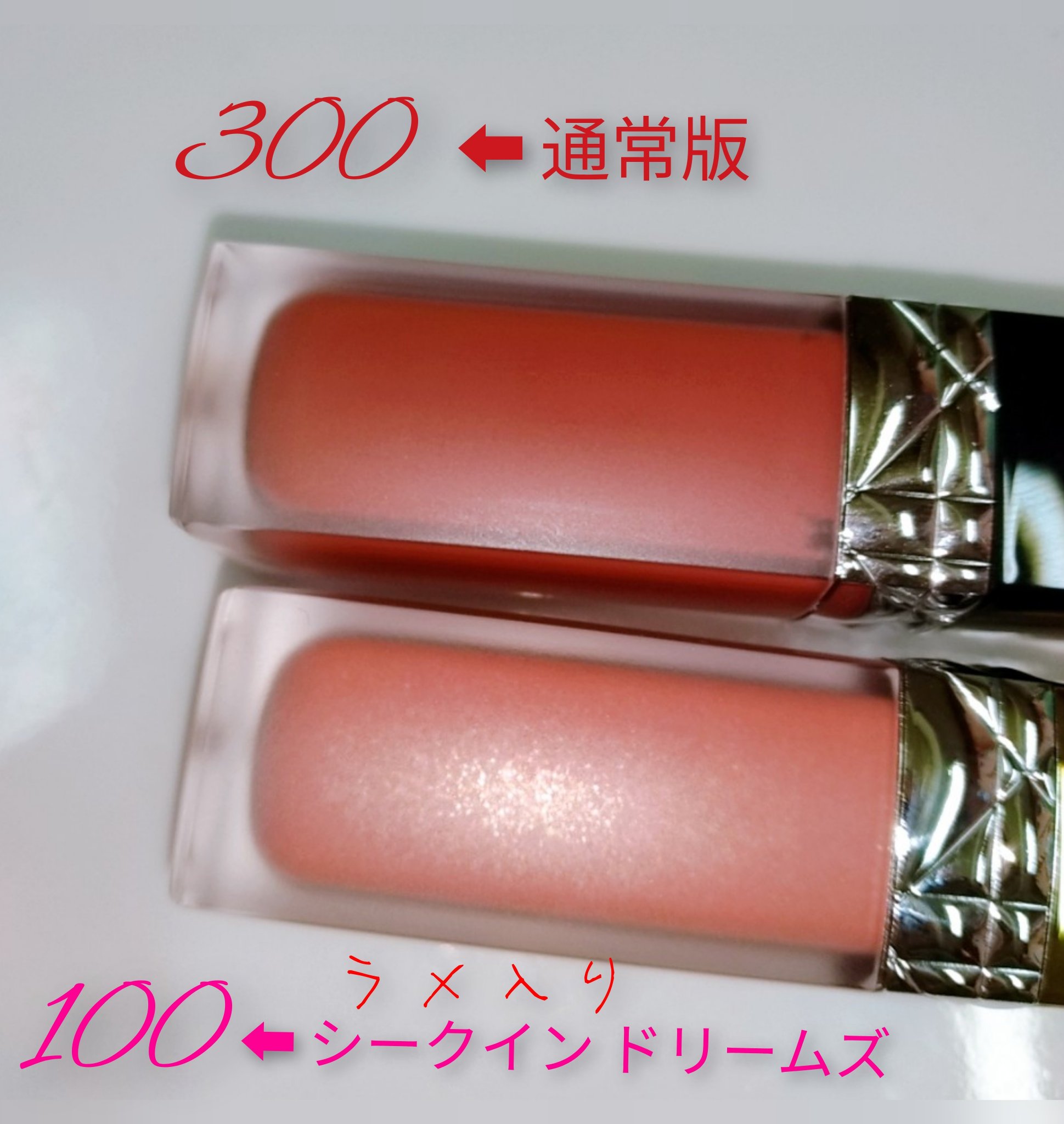 キラキラ感が増すリップで去年もめちゃくちゃバズったけど今年も出た😍♥️ 323 シルバーラメの輝きに明るめのピンク系 843 ゴールドラメでゴージャスながら深みのある赤 ルージュ ディオール フォーエヴァー リキッド シークイン 各¥6,270(税込)