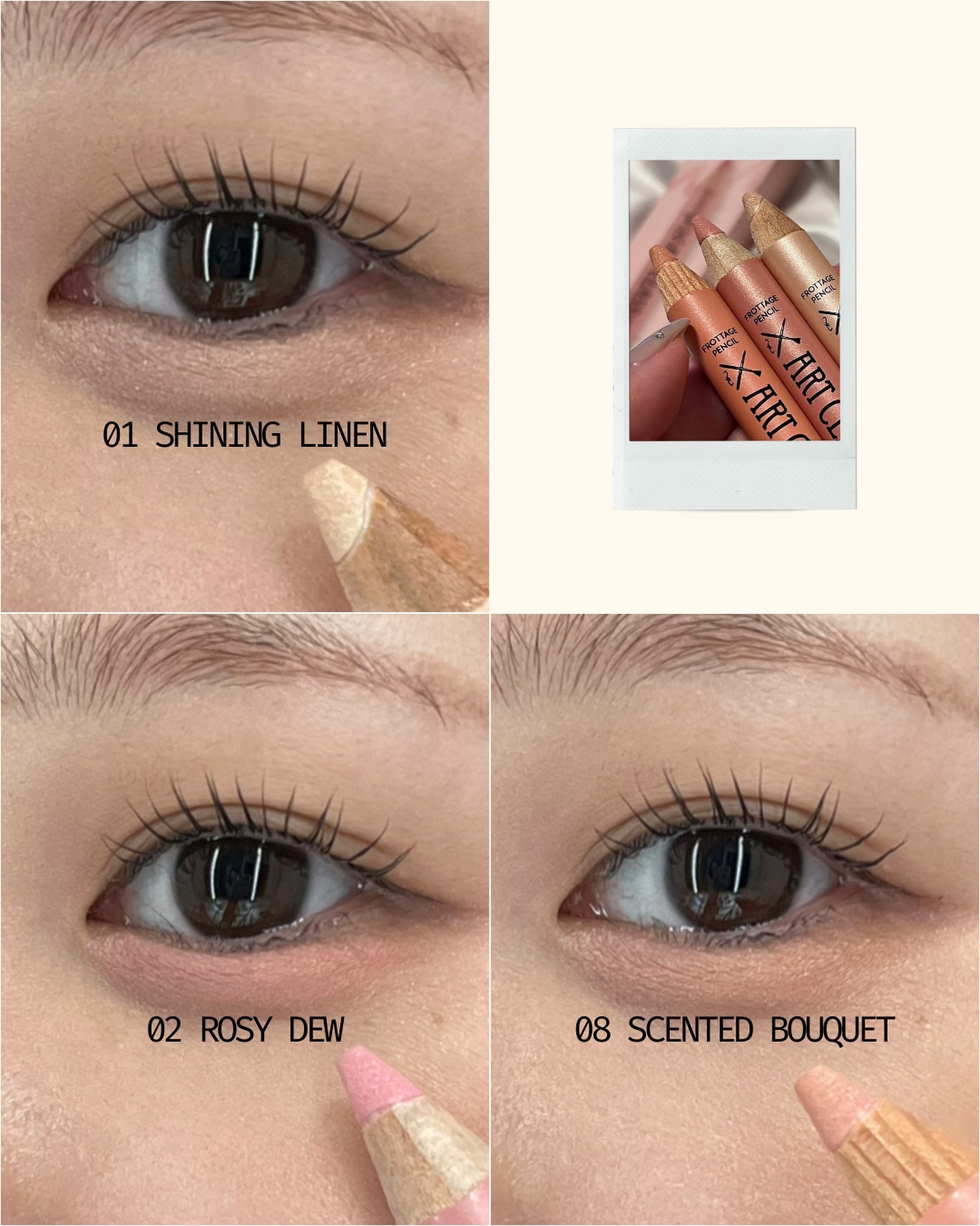 K-POPアイドルが日常的に使用していると話題になった有名なアイシャドウペンシルで韓国でとっても人気のアイテム🤍 シャドウだけでなくチークやハイライト、リップライナーとしてもマルチに幅広使える優秀なコスメ❣️ ラメが上品でツヤ感がでるのも嬉しい🥰 1本ずつに専用のシャープナー付きだよ✨