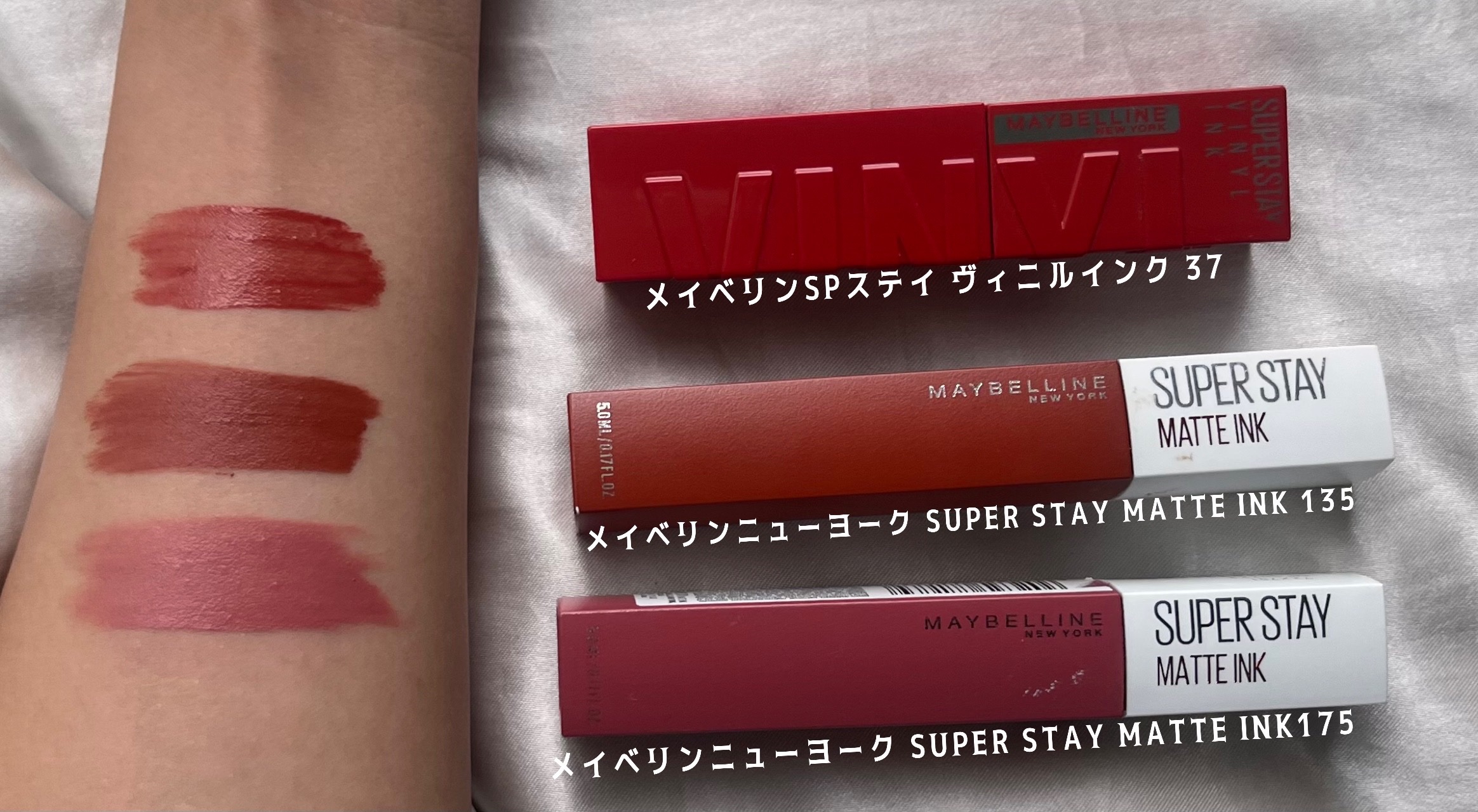 イエベさん必見! 可愛いリップ紹介🍁 メイベリンSPステイ ヴィニルインク 37 ▶︎メイベリンニューヨーク SUPER STAY MATTE INK 135 ロムアンドZERO VELVET TINT #14 PECAN TARTE ▶︎ロムアンドZERO VELVET TINT #15RUSK RUSK