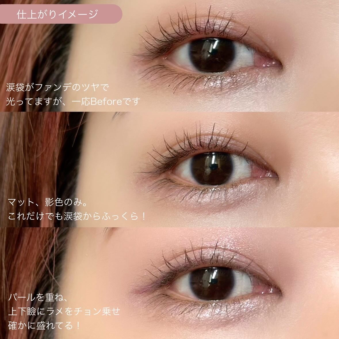 - マット・パール・ラメ入りで3パターンの涙袋が作れる 涙袋用アイシャドウパレット 涙袋用に3色、涙袋の影用に1色がセットされた涙袋用のアイシャドウパレットです。 その日の気分やTPOに合わせて選んでみてくださいね! マットは透け感があり目元のシワが気になりにくく、 パールは繊細で透明感のあるツヤっとした仕上がりに、 ラメはキラキラと輝く透け発色です。 涙袋の影用の「血色影カラー」は、影寄りの色なのに血色感もあって目元が暗くならない パウダーだからこそできた絶妙な色味なんです!