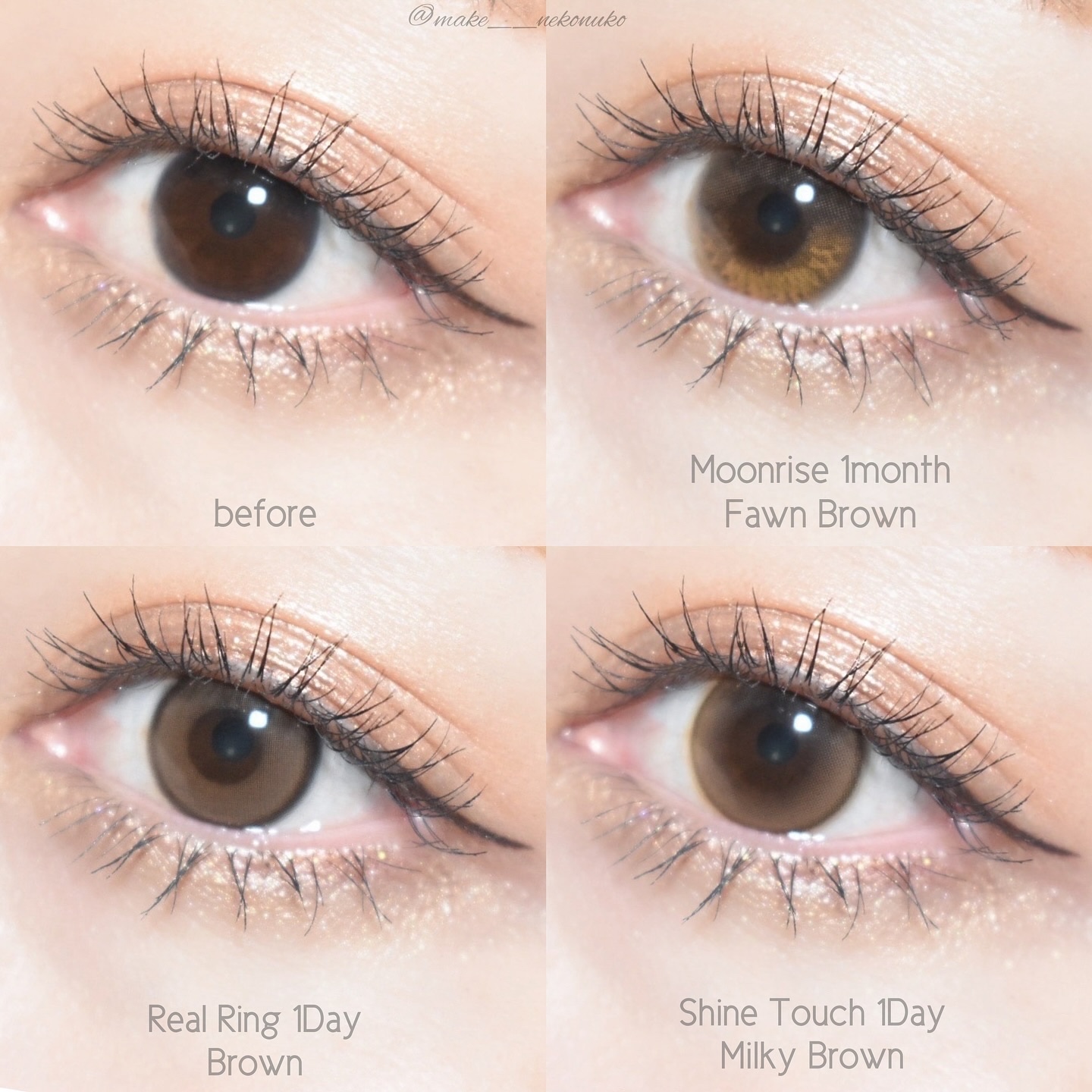 奥目だと光を集め、目元を明るくさせるものがオススメらしいよ✨✨ リアルリングブラウン DIA 14.2 着色直径 12.5 小さめだけど、くっきりめの細ふちでナチュラルに盛れる感じ🙆♀️ ミルクを混ぜたようなブラウンが可愛い!
