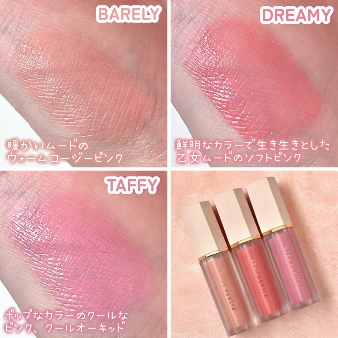 - ・花びらのような血色感をもたらすウォーターリキッドブラッシャー ・ウォータリーテクスチャーでツヤ感を出しながらナチュラルにレイヤリングが可能 ・持ち運びが便利でいつでも血色感をプラスできる ・チーク初心者でもナチュラルに発色するので安心! ・ダリア花抽出エキスのスキンコンディショニング作用によってお肌をケアしながらメイク可能。 ブルベオススメカラー/BARELY×TAFFY イエベオススメカラー/BARELY×DREAMY