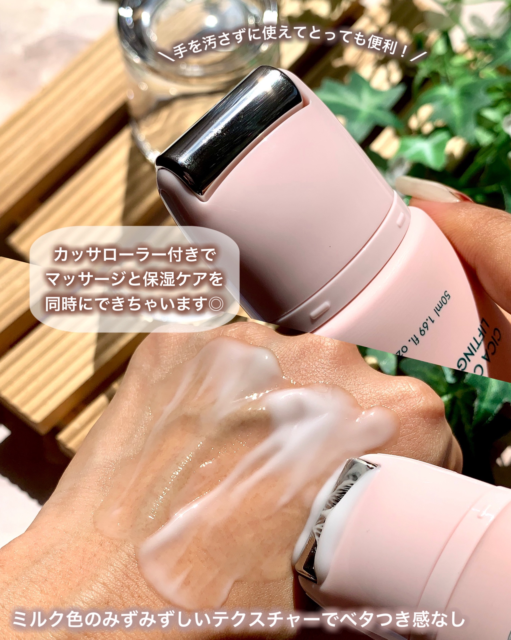 グルタチオン・ナイアシンアミド配合で明るく透明感のある肌にケアしてくれるセラムです!! トロミがあるけど、ベタつかずに肌馴染み◎💕 リフトアップを意識しながらカッサのローラーで引き上げるのが気持ちよくて最高!! 頬のもたつきが気になるから、顎のラインを捉えながら引き上げるのが気持ち良い💫 球体のコロコロボールが付いてるアイセラム!! ジェル状のセラムが重たくならずみずみずしい目元に✨