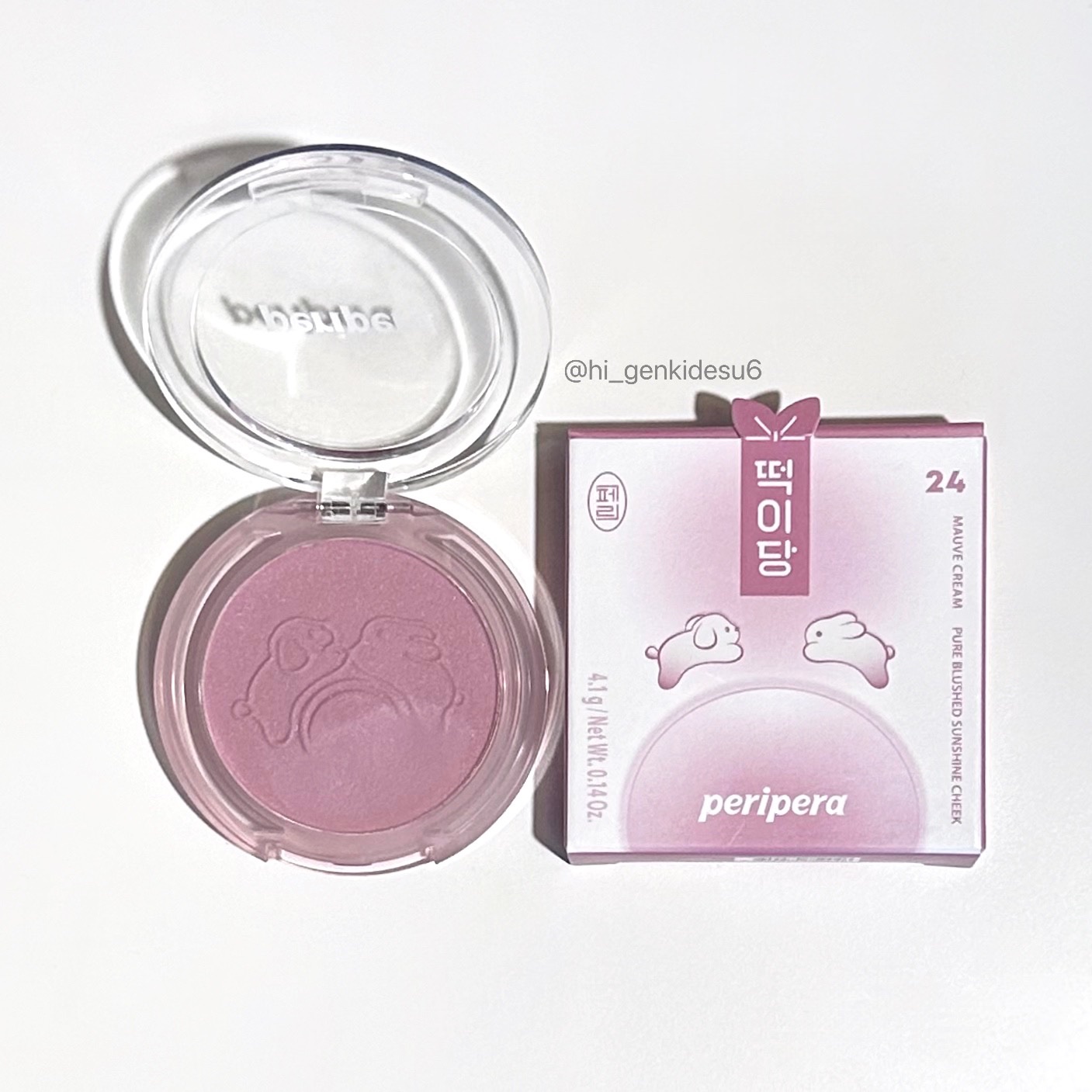 PERIPERAピュアブラッシュドサンシャインチーク24MAUVECREAMこの24番はクリームタイプのチークで絶妙なくすみピンクでめちゃくちゃ可愛い(˶ᵔᵔ˶)クッションの上にパウダーのせてるからねりチークやリキッドチークはよれるでもこのク...