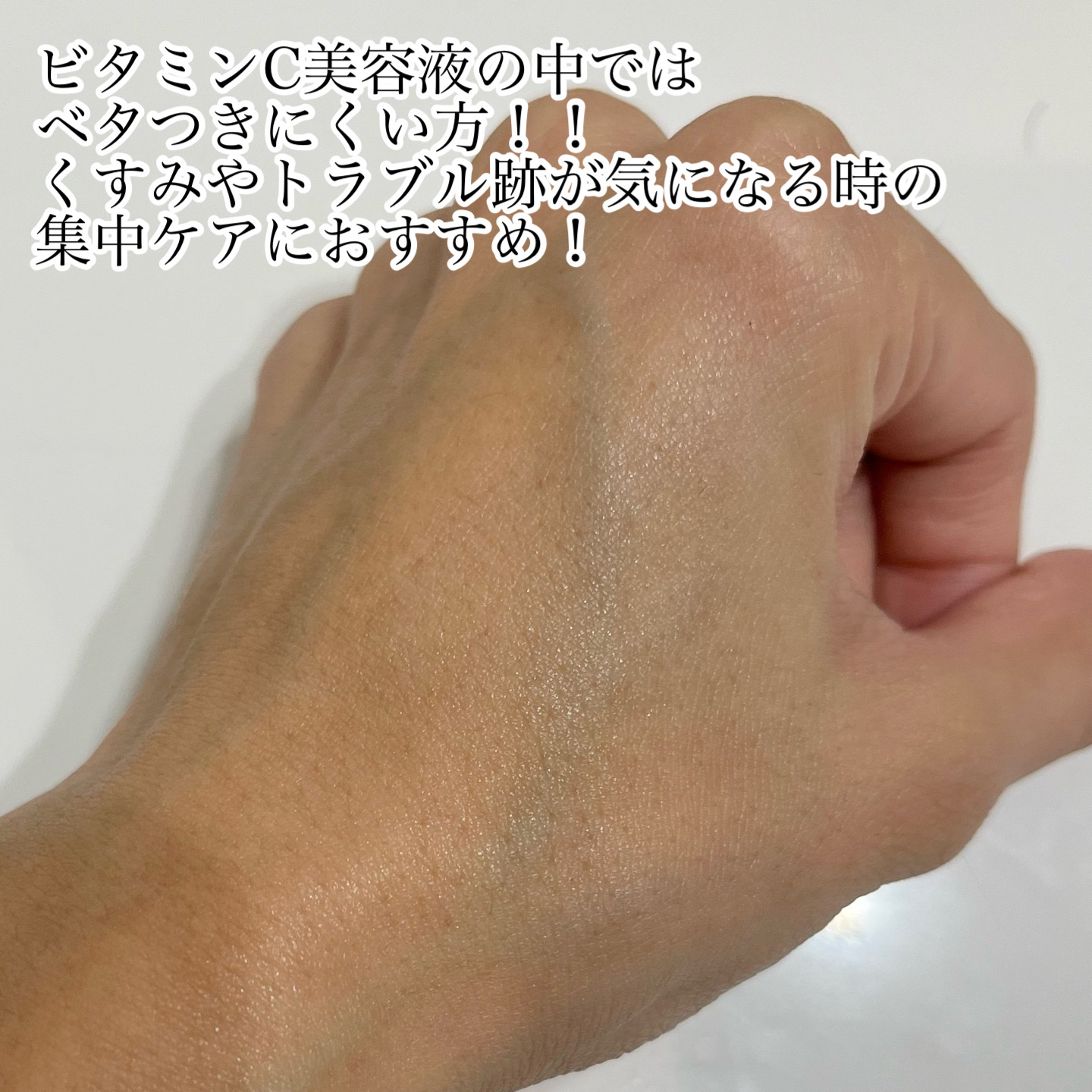 - 高濃縮のピュアビタミンC*やグルタチオン*をたっぷり配合した美容液です。 べたつかないテクスチャーで肌を保湿し、ツヤのある美肌に導きます。 ☑ピュアビタミンC* 145,000ppm配合 ☑独自整肌成分MELA-FADE ☑ナチュラルビタコンプレックス:カムカムの実エキス*・ビタミンツリーウォーター*・カカドゥプラムエキス*配合 ☑ビタミンの鮮度を維持するため、茶色の瓶3本に小分けしたパッケージを採用 ☑肌の角質層により浸透されやすい、こだわりのpH濃度(pH4.0以下)に設定 ☑乾燥によるくすみケア/弾力ケア/保湿ケア/肌キメケア 化粧水などでお肌を整えたあと、適量を取り、お肌のキメに沿ってまんべんなく塗った後、やさしくなじませます。 * 保湿成分 ■お肌に異常が生じていないかよく注意してご使用ください。化粧品がお肌に合わないとき即ち次のような場合には、使用を中止してください。そのまま使 用を続けますと、症状を悪化させることがありますので、皮膚科専門医等にご相談されることをおすすめします。また、傷やはれもの、しっしん等の異常が ある部位には、ご使用にならないでください。 (1)使用中、赤み、はれ、かゆみ、刺激、色抜け(白斑等)や黒ずみ等の異常があらわれた場合 (2)使用したお肌に、直射日光があたって上記のような異常があらわれた場合 ■目に入らないようご注意ください。目に入ったときは、こすらずにすぐに洗い流してください。その後、目に異常が残る場合は、眼科専門医へご相談され ることをおすすめします。 ■極端に高温又は低温の場所、低湿、高湿の場所、直射日光のあたる場所には保管しないでください。 ■衣類につくと、しみになることがございますのでご注意ください。 ■乳児、子供の手の届かない所に保管してください。