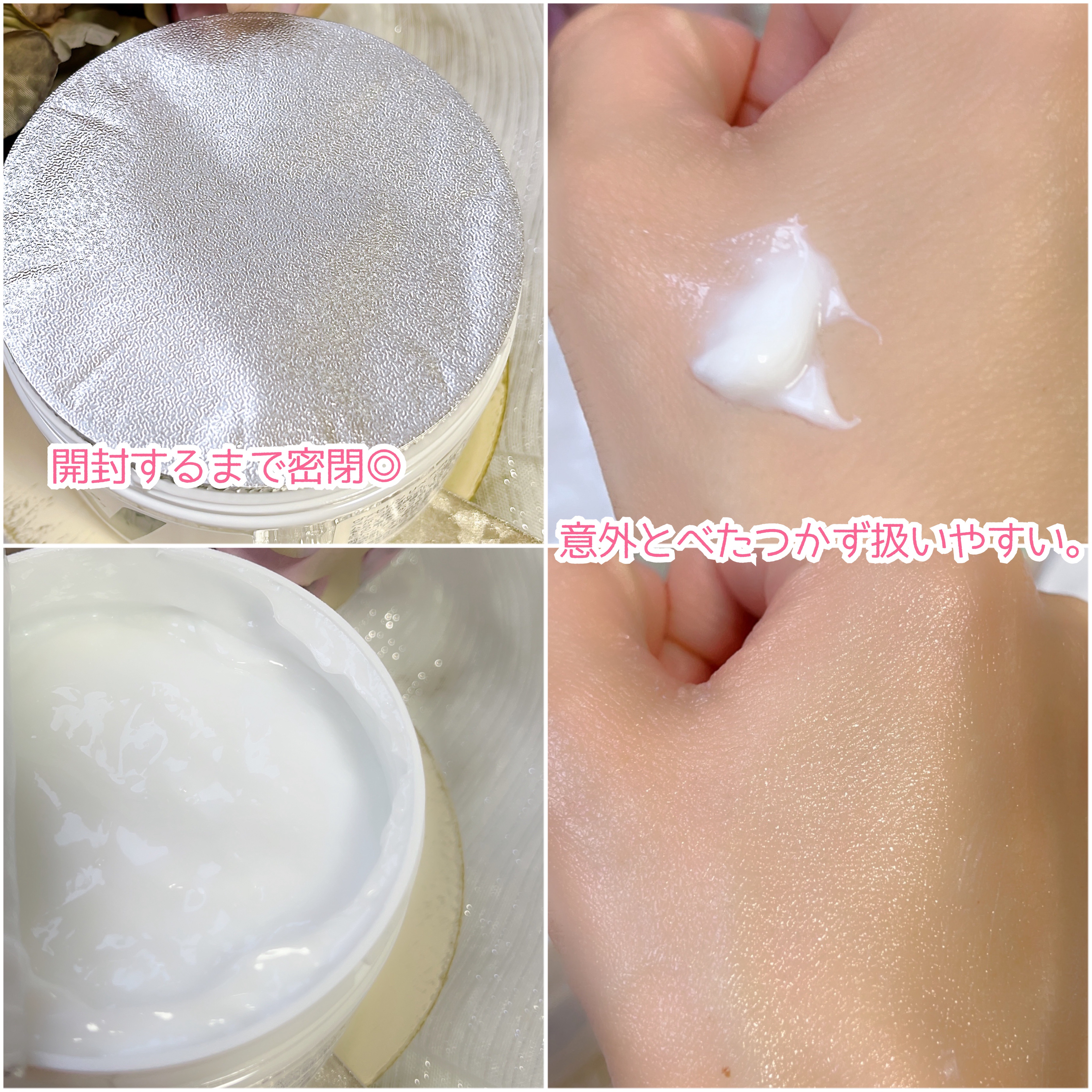 乾燥肌~超乾燥肌さんにオススメなボディケアアイテム★ 嬉しい成分「レチノール」が配合されており、さらにヒアルロン酸を4種類も配合されているとのこと!! 保湿に特化したボディクリームとのことで、おやすみ前に塗ることで翌朝「うるもち肌」に導いてくれるとのことです♡ 濃厚ながらもみずみずしいテクスチャーで伸びがとても良いテクスチャー。肌馴染みもとても良くて、べたつきのない使用感✨