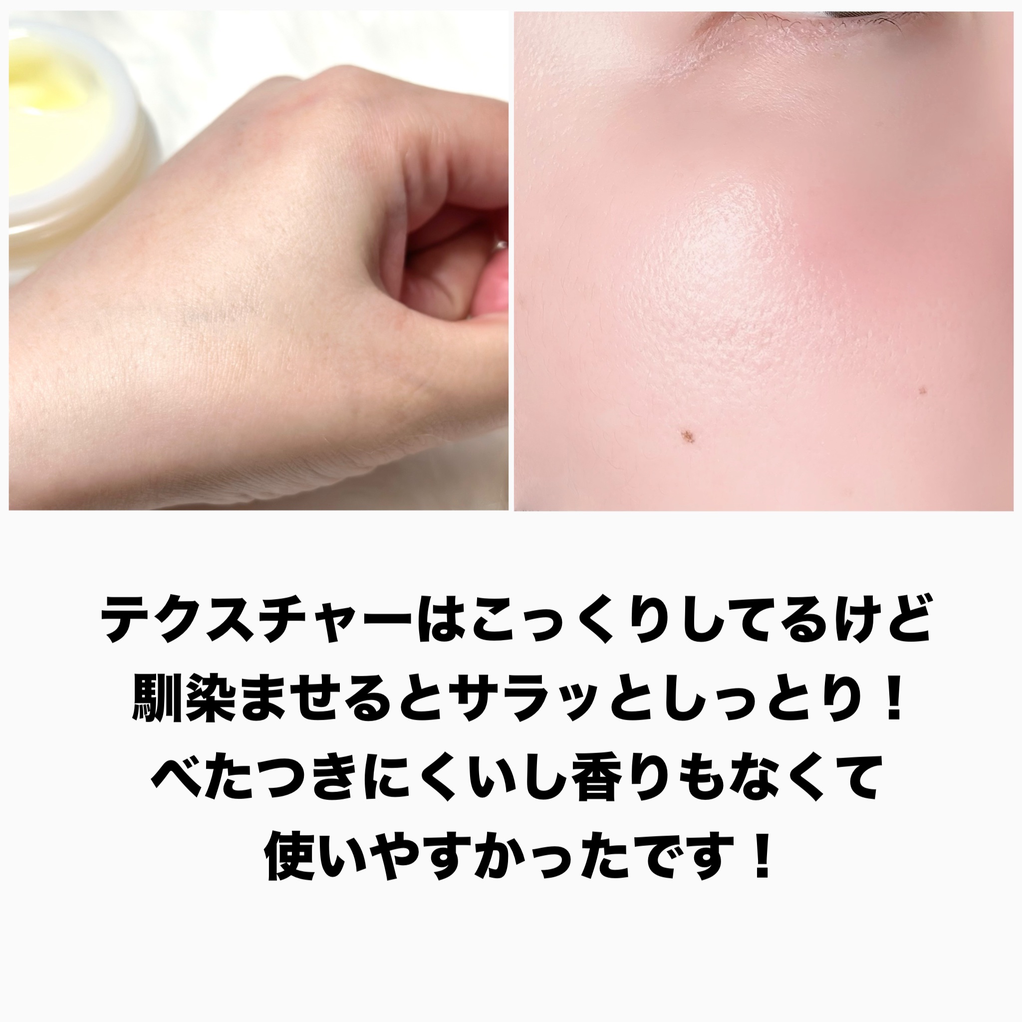 カスタードみたいな見た目のクリーム やや濃厚寄りのなめらかなテクスチャー ベタつきはなく、黄色の色味は塗布して伸ばす段階でわからなくなります なぜ黄色❓ →人工色素ではなくて天然色素とビタミンが多く含まれているため👀 Dr.Gのクリームといえば付属スパチュラ🌟 扱いやすいデザインです◎