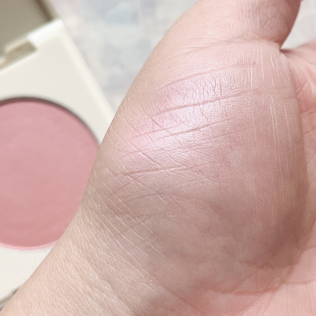 指で押さえてむにゅっと パールでキラキラ感はあるけど、細かいので本当に上品♡ 肌に乗せると見た目よりも明るいテラコッタオレンジに発色しました。 さらさらなのに伸びもよく、濃さも自由自在で、とても使いやすい&かわいい新作チークでした♡♡♡