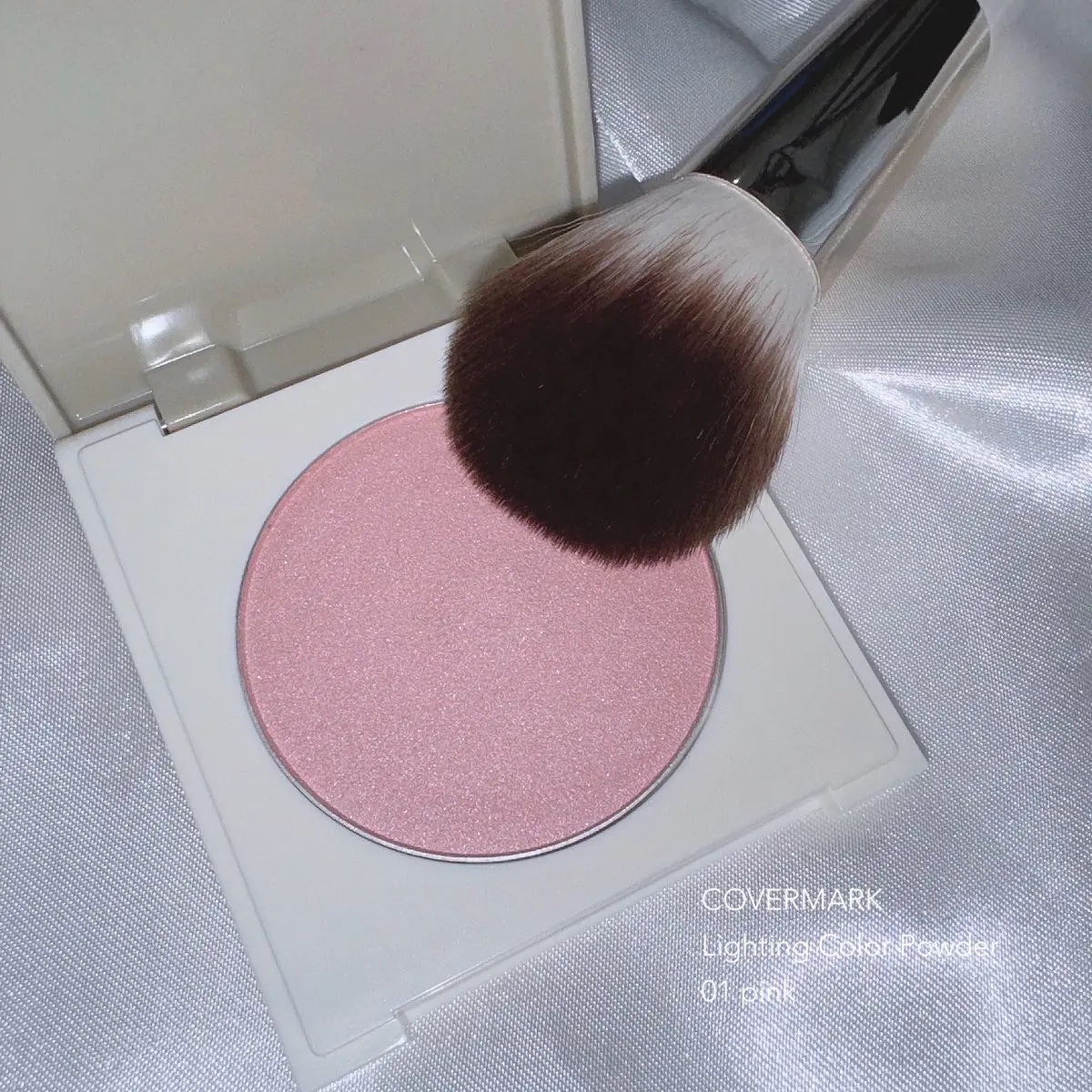 チークを超えた艶めきと華やかさをプラスしてくれるカラーパウダー✨ 粉質が軽くフワッとしており、肌にのせるとスッと馴染んでいく感じ。 血色感はもちろん、繊細で柔らかな艶めきがプラスされて良き◎ 同じCOVERMARKのフェイスブラシが優秀! ブラシの密度がほどよく粉含みがよく、肌あたりも柔らか。