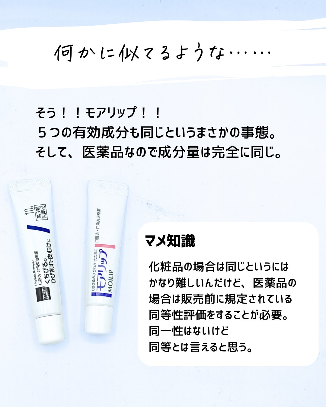 特定の有効成分を試してみたい。美容成分を試したい。そんな時は代用してもいいけど、それって似てるのかな?って思うときが正直ある。 同じ成分があっても実は濃度が違ったり、処方技術が違ったり。技術が違うと使用感も剤型も変わることがあることは知ったうえで使うといいかも。 せっかくプチプラ化粧品を買うならそれはそれで楽しんでほしいから是非念頭にいれてほしいな!!