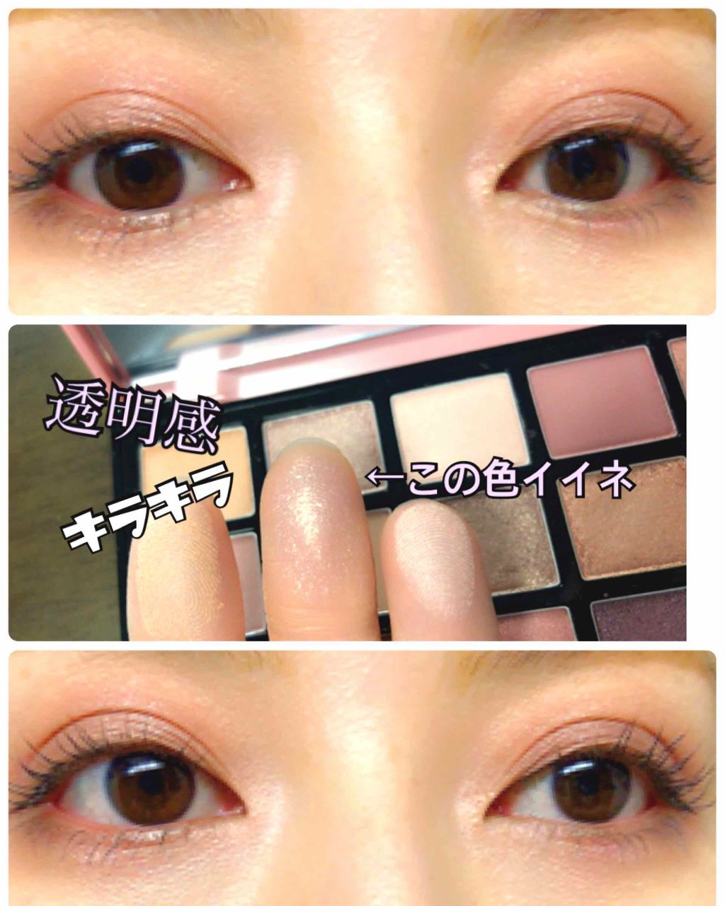 今日のアイメイク。最近韓国コスメの#ピアーピグメントを買ったのでよく使います。今日はルナソルのスキンモデリングアイズの01左上ハイライトカラーをアイホールにピアーピグメントの10雨光を二重幅と下まぶたにアイラインはちょっと締めようと思って濃茶...
