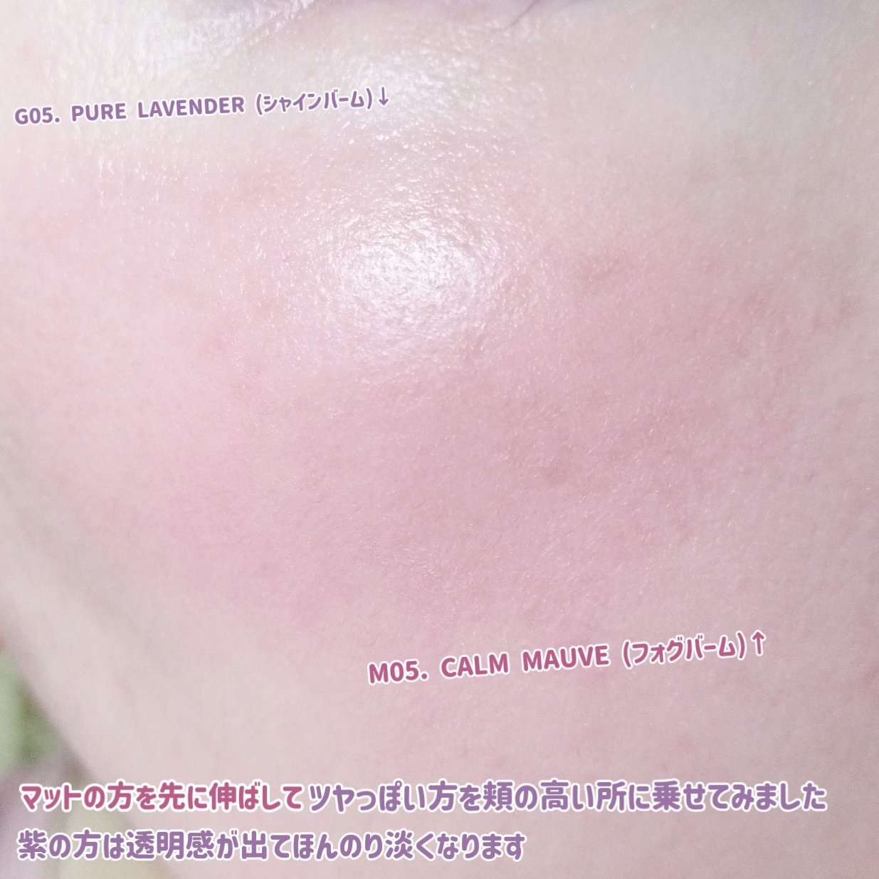 - ‘14 COLOR X 2 TEXTURE’ミキシングで完成する無限な カラースペクトラム、カラーとテクスチャーを自由に カストマイズして毎日違うMOOD 演出! リップ, チーク, 鼻筋, シャドウ, 顎, こめかみ そして ボディまで使える。 ブレンドと密着にこだわったグロッシーな ‘シャインバームテクスチャー’ とソフトな‘フォグバームテクスチャー’ がどの部位にも簡単にブレンドされ、しっかり密着される。