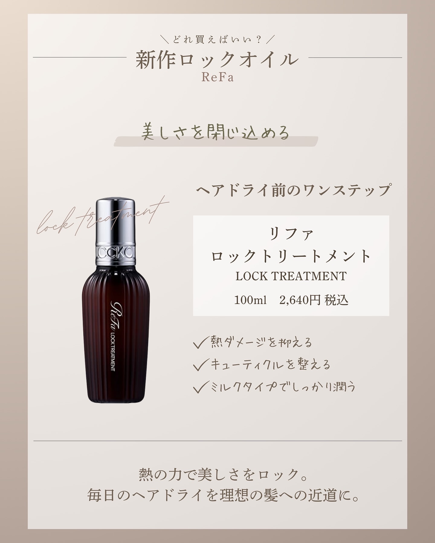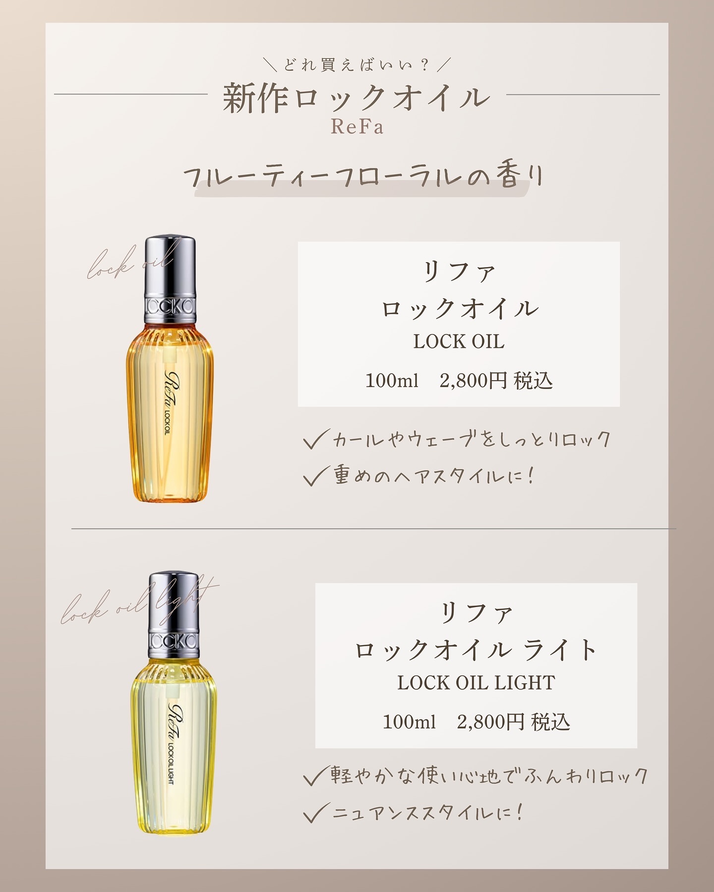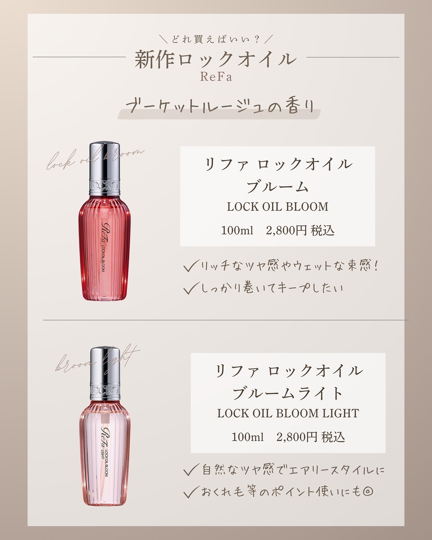 ついに待望の新作発売🤍 ボリュームヘアさん向けと前髪用の𝟐つが仲間入り⟡.· リファ ボリュームロック 𝟐,𝟖𝟎𝟎円 税込 ✧︎リファ マエガミロック 𝟐,𝟖𝟎𝟎円 税込 ロックオイルブルームライト愛用してるんだけど、外出用に新作のマエガミロック購入しようと思ってるよ🫧