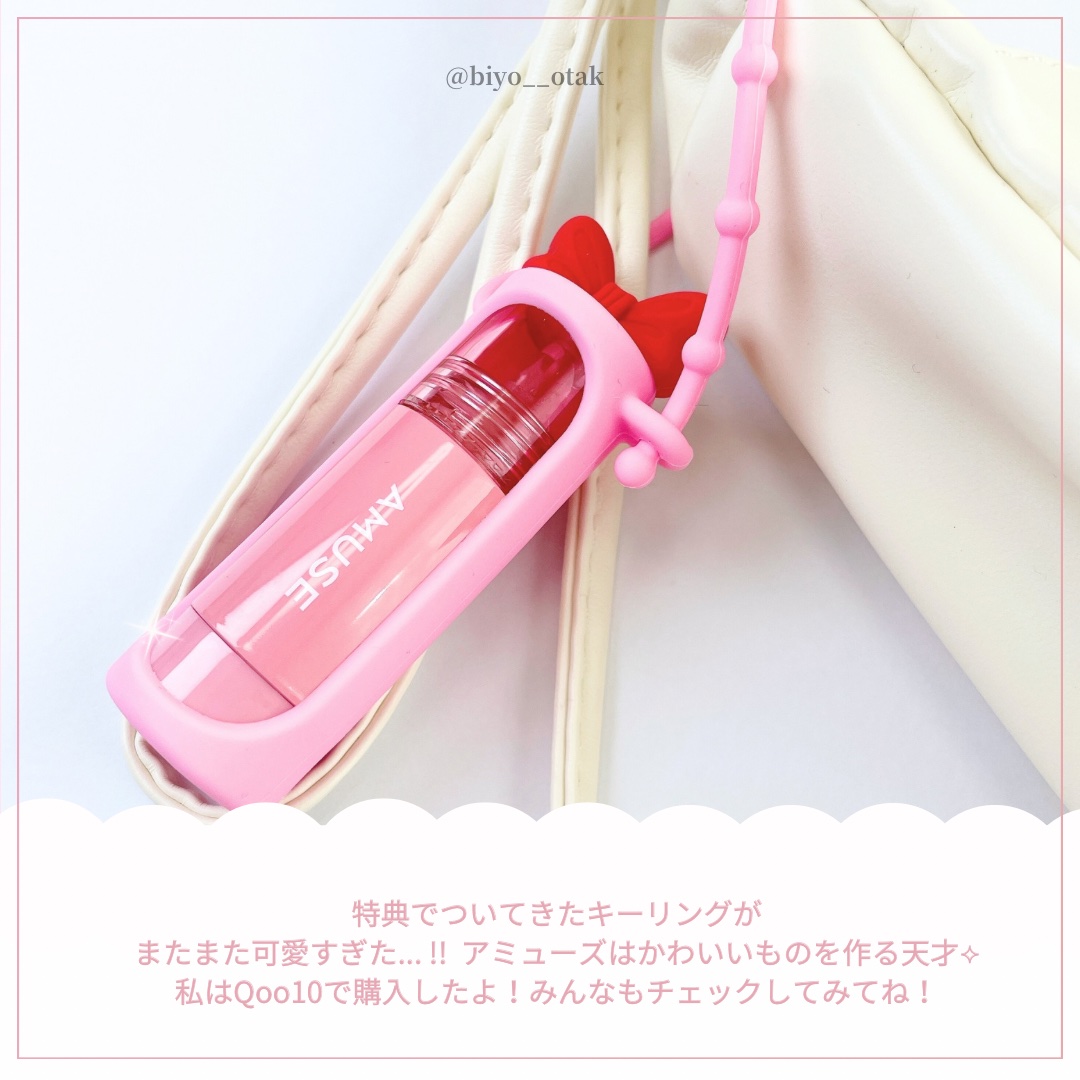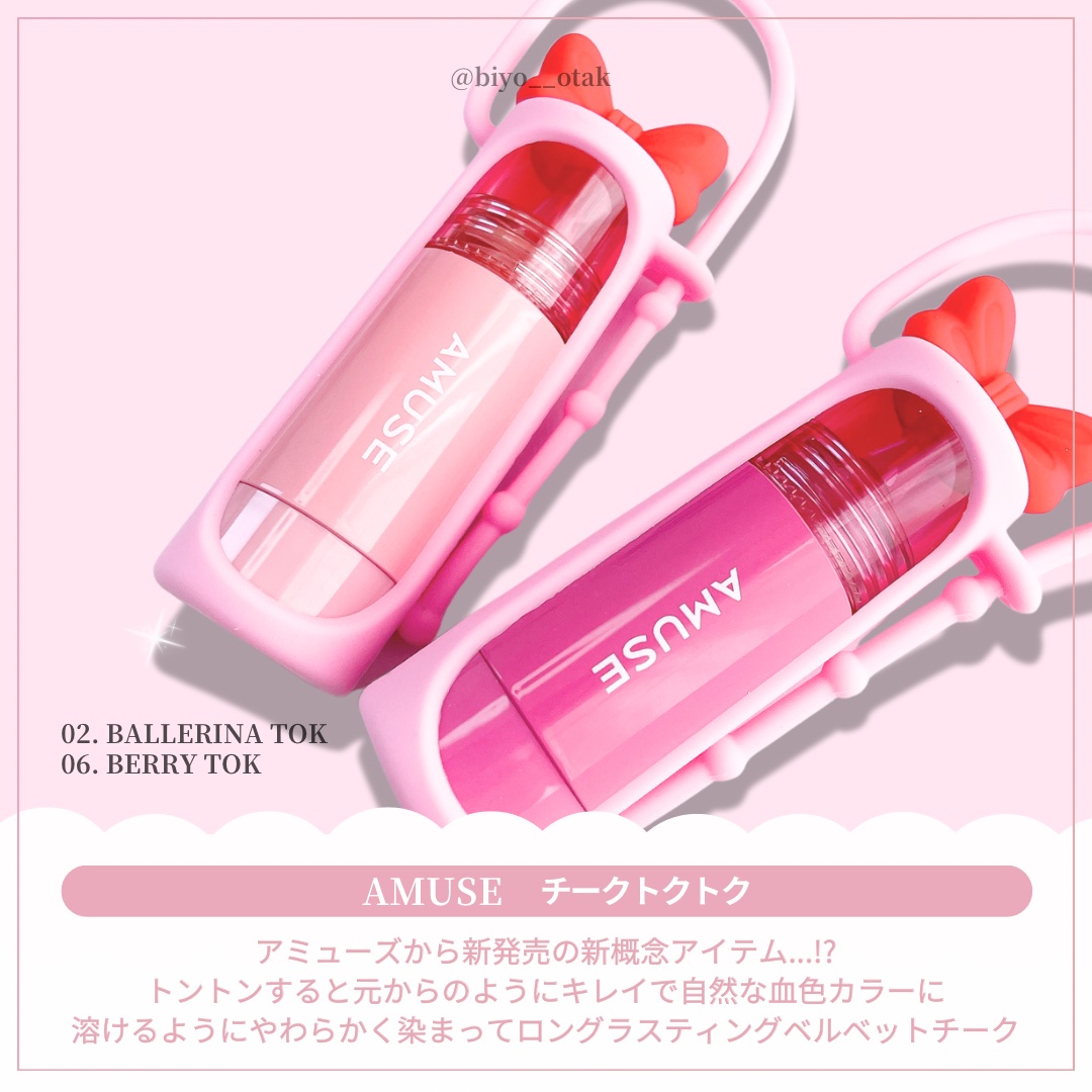 外側はさらっと、内側はしっとりとしたつけ心地の甘可愛いチークカラー☺️ お肌に溶け込む様なふんわり発色で可愛いよね🥰 チークトクトク含めたアミューズコスメを2つ購入すると、トクトクキーリングも貰えるんだって😆