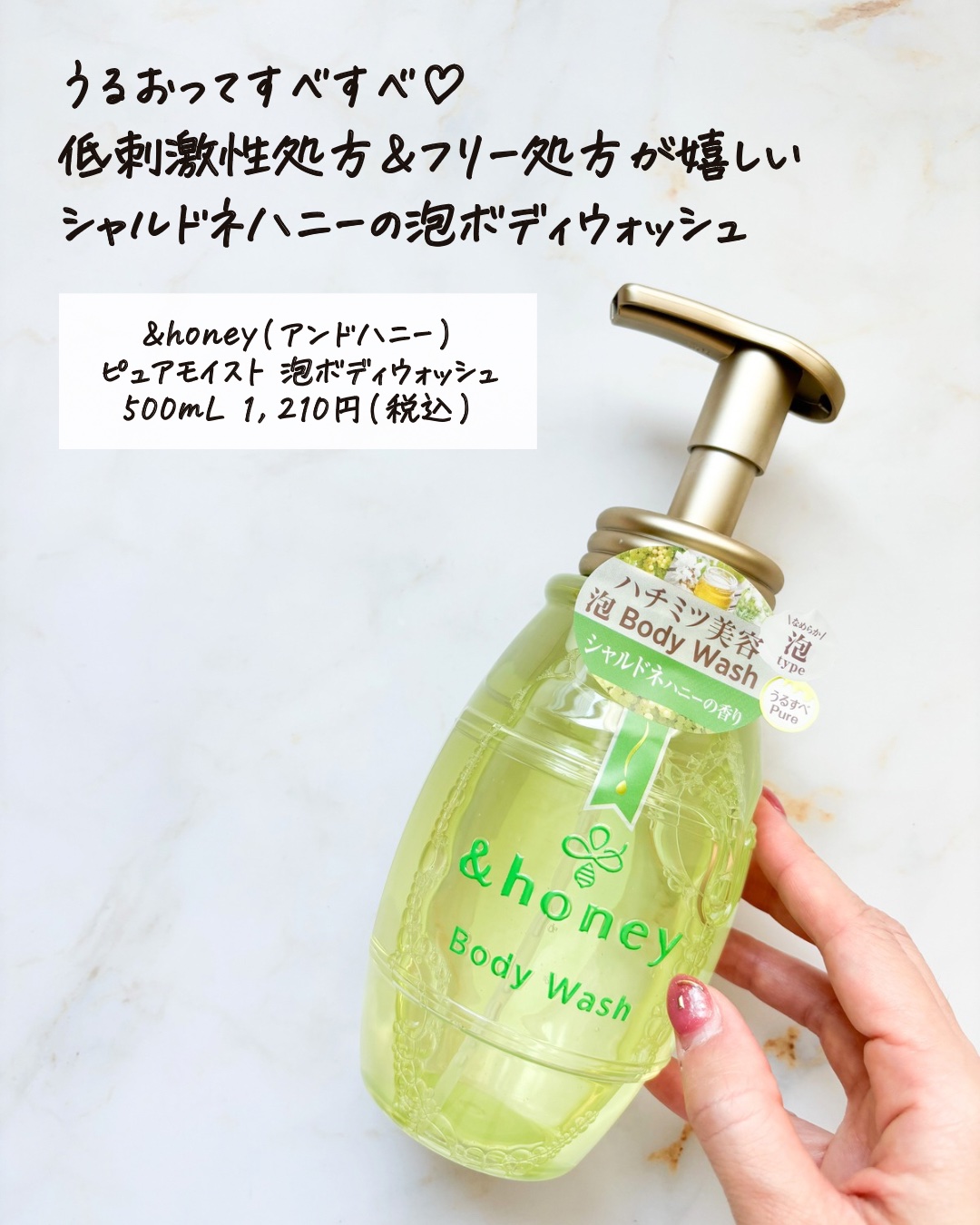 みずみずしく上品なシャルドネの香り &honeyから泡タイプのボディウォッシュが初登場!! お肌のことを考えた低刺激処方※ すべての肌に刺がおきないというわけではありません キメ細やかな泡ですが泡切れがよく 流した後はしっとりすべらか♡