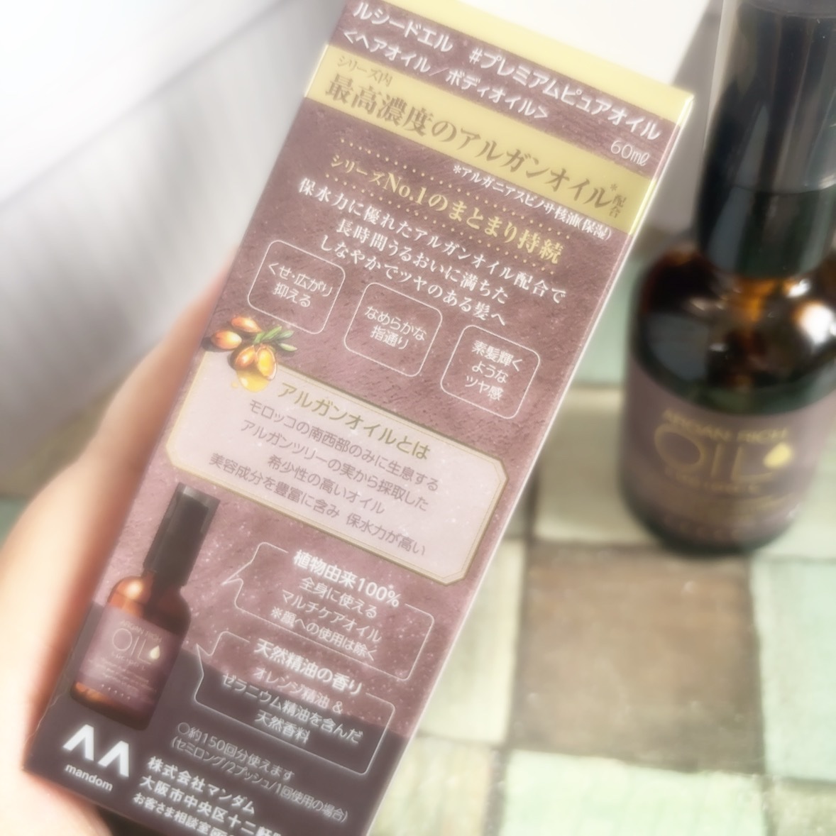 人気のルシードエルヘアオイルからプレミアムタイプが登場!極・うるツヤ髪へ こちらは、なんと‼️ハンドケアもできるとのことで、ヘアケアをした後そのままもうワンプッシュし🖐️の保湿をしてます🥰 シリーズ最高濃度のアルガンオイル※1配合。髪の広がりやパサつきを抑え、艶やかな髪へと導きます。