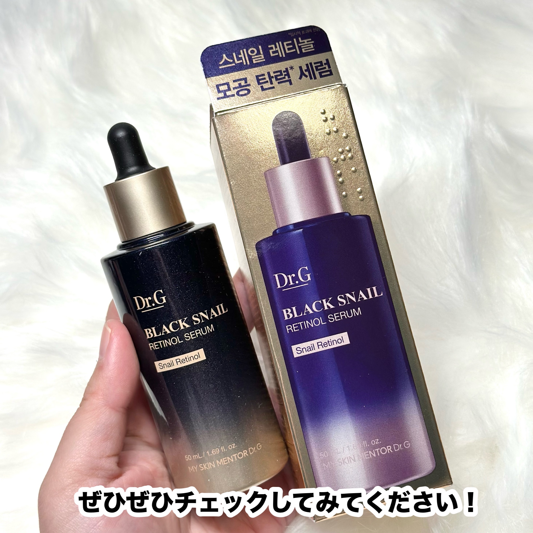 Dr.G(ドクタージー)ブラックスネイルレチノールセラムエイジングケア*に良いとされる成分、レチノール。魅力的だけどお肌への刺激が気になります。Dr.Gのレチノールは、刺激は少ないけど効果の高い第3世代レチノールなんだそう。さらにブ...