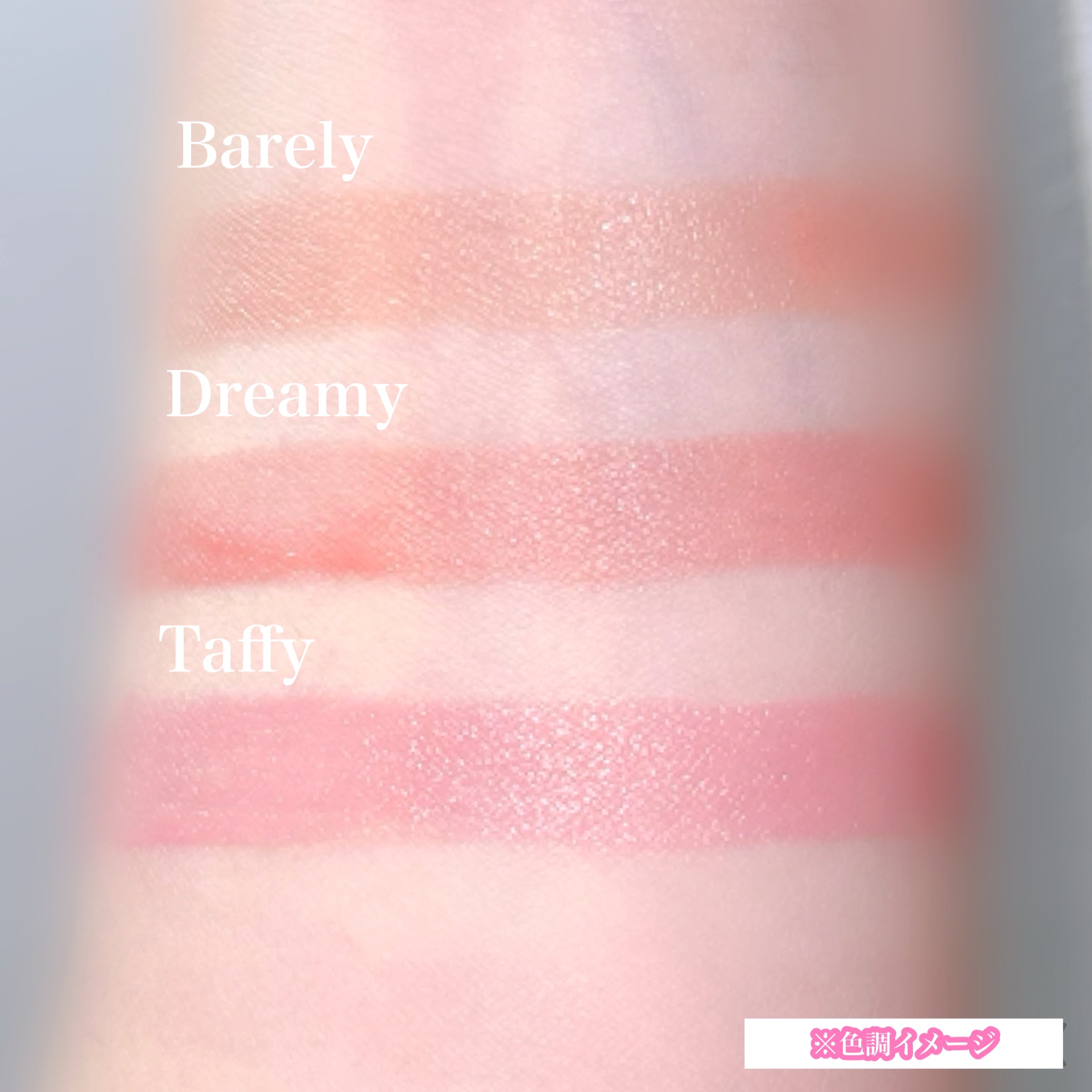 - ・花びらのような血色感をもたらすウォーターリキッドブラッシャー ・ウォータリーテクスチャーでツヤ感を出しながらナチュラルにレイヤリングが可能 ・持ち運びが便利でいつでも血色感をプラスできる ・チーク初心者でもナチュラルに発色するので安心! ・ダリア花抽出エキスのスキンコンディショニング作用によってお肌をケアしながらメイク可能。 ブルベオススメカラー/BARELY×TAFFY イエベオススメカラー/BARELY×DREAMY