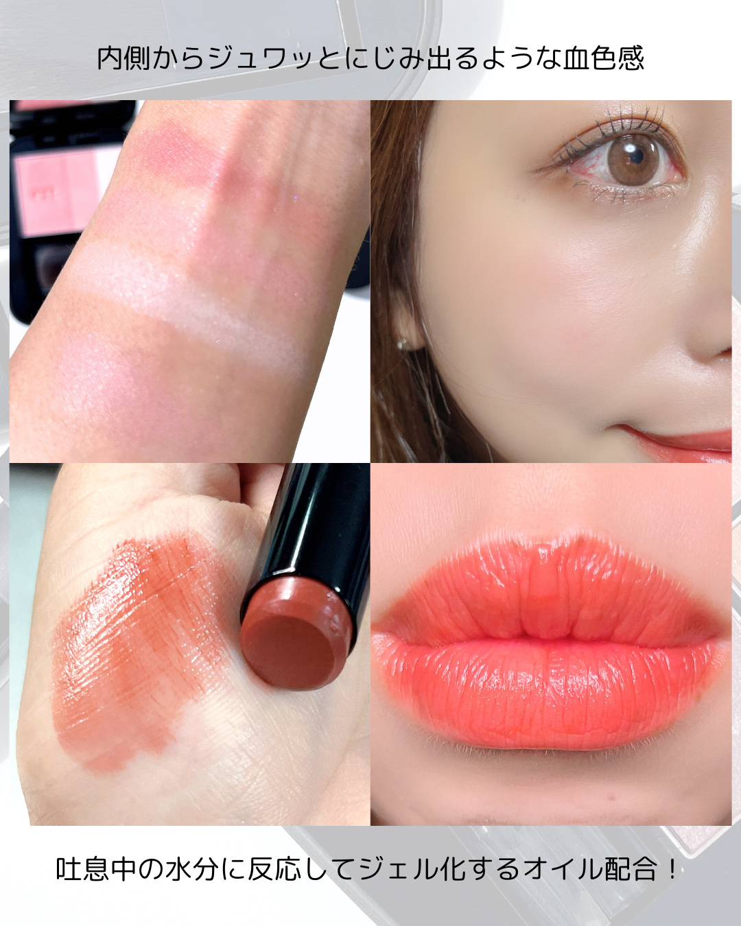 透明感と生命力あふれる美しさを手に入れよう!💖 トランスフィアパールが光を反射して、重ねるたびに透明感が増し、明るさが際立ちます。 みずみずしい艶と血色感で、ふっくらとした唇に。保湿成分配合で一日中乾燥知らず!