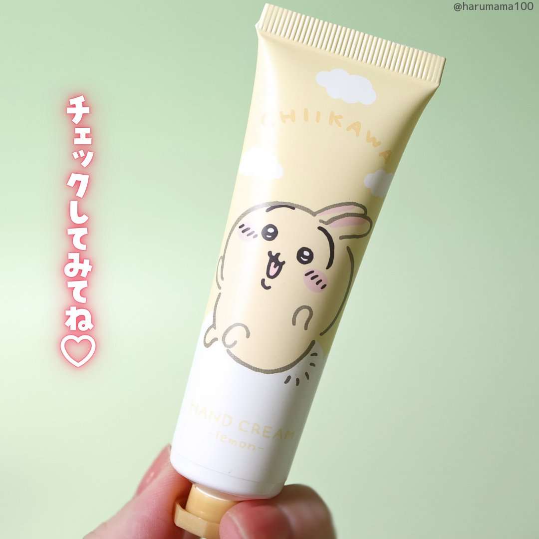 - 人気の「ちいかわ」からハンドクリームが登場! うるおい保湿成分配合(シアバター・アルガンオイル)でしっとりなめらかな手肌へ。 うさぎ:レモンの香り