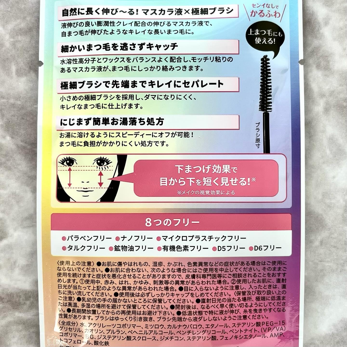 - もっちり伸びるマスカラ液と極細ブラシの組み合わせで、下まつ毛の1本1本をしっかり際立たせる「下まつ毛 注力マスカラ」 【極細ブラシ】 キレイにまつげをセパレート。短いまつげもしっかりキャッチ。 【液伸び処方】 抜け感&ロングラッシュ効果で自まつ毛が伸びたような自然な仕上がり。上まつ毛にもおすすめ。 【お湯落ち処方】 まつ毛やデリケートな下まぶたへの負担が少なく安心 2024年3月中旬から全国ドラッグストア、バライエティショップ、公式オンラインにて発売中