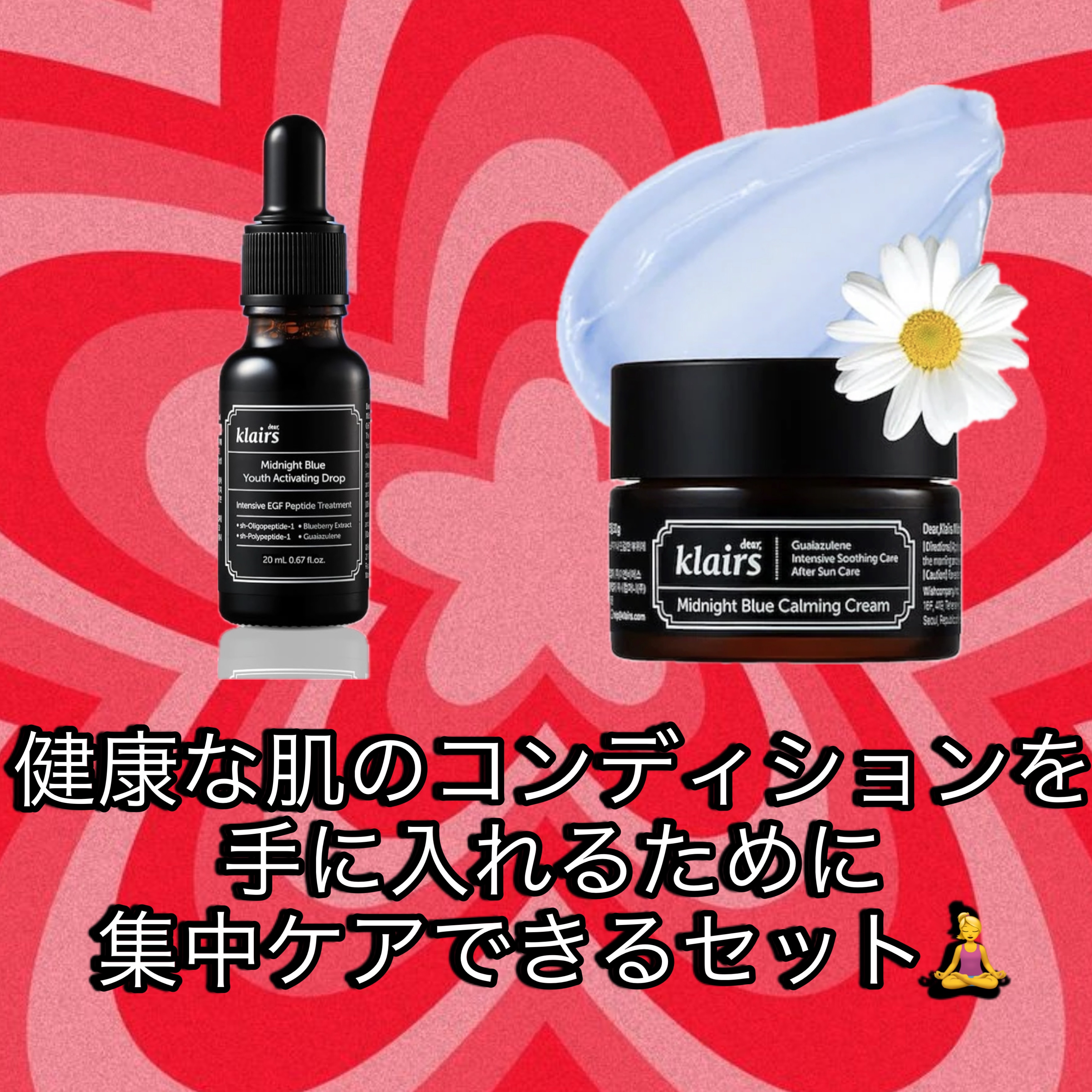 ちょこ【@choco_beautychannel】です🤍肌荒れ・赤み・毛穴に悩んでる方におすすめしたい、クレアスのミッドナイトブルーシリーズをご紹介💙■klairs(クレアス)【ミッドナイトブルードロップ】💦グアイアズレン×EGF・bEGF配...