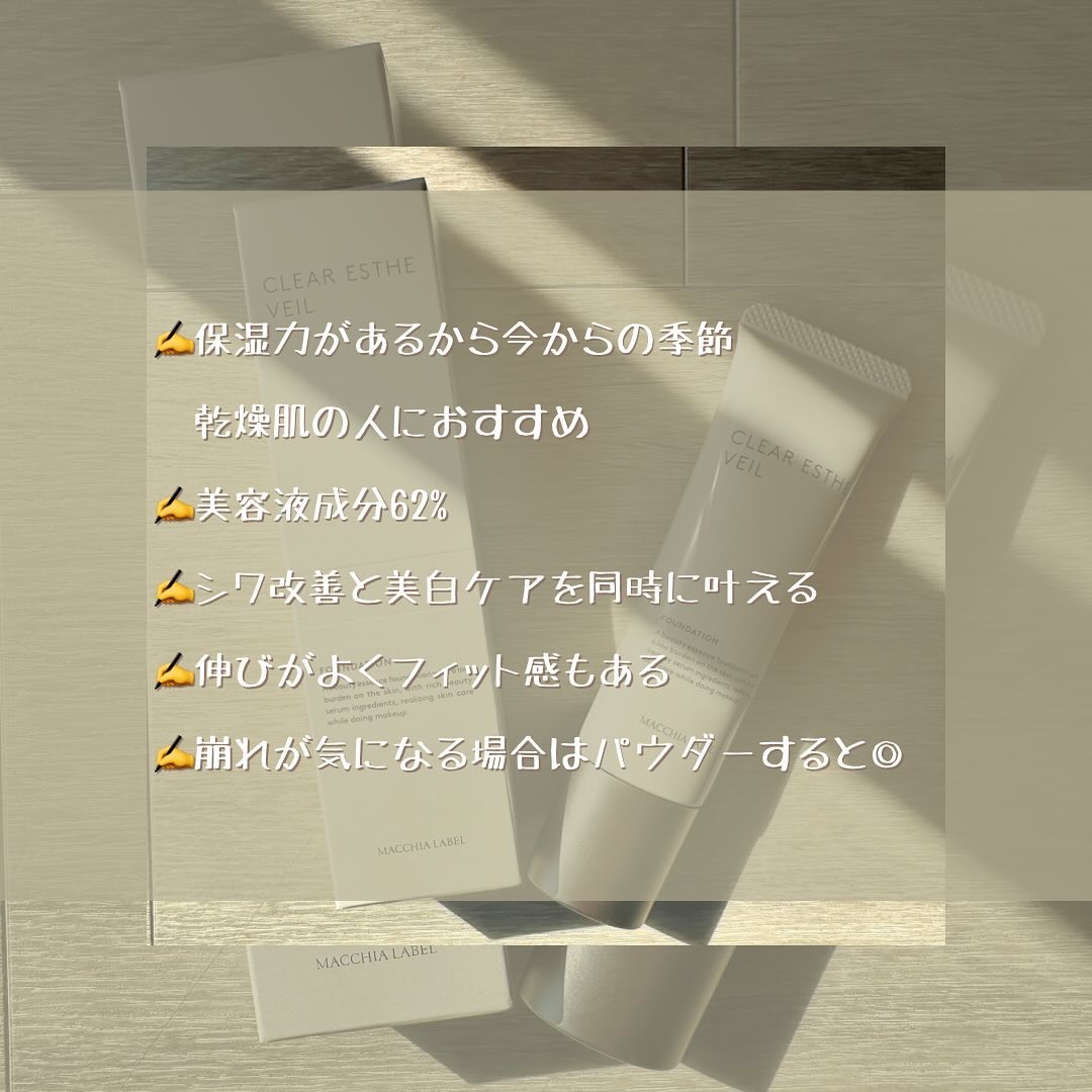 軽やかな伸びの良いテクスチャで自然なツヤ感のある肌に仕上げてくれる✨ メイクをしている間もシワ改善、美白ケアができる優れもの美容液成分62%配合で保湿力があり肌が潤う💧 「心地よさ」と「肌の健やかさ」両方を叶えてくれるよ⭐️