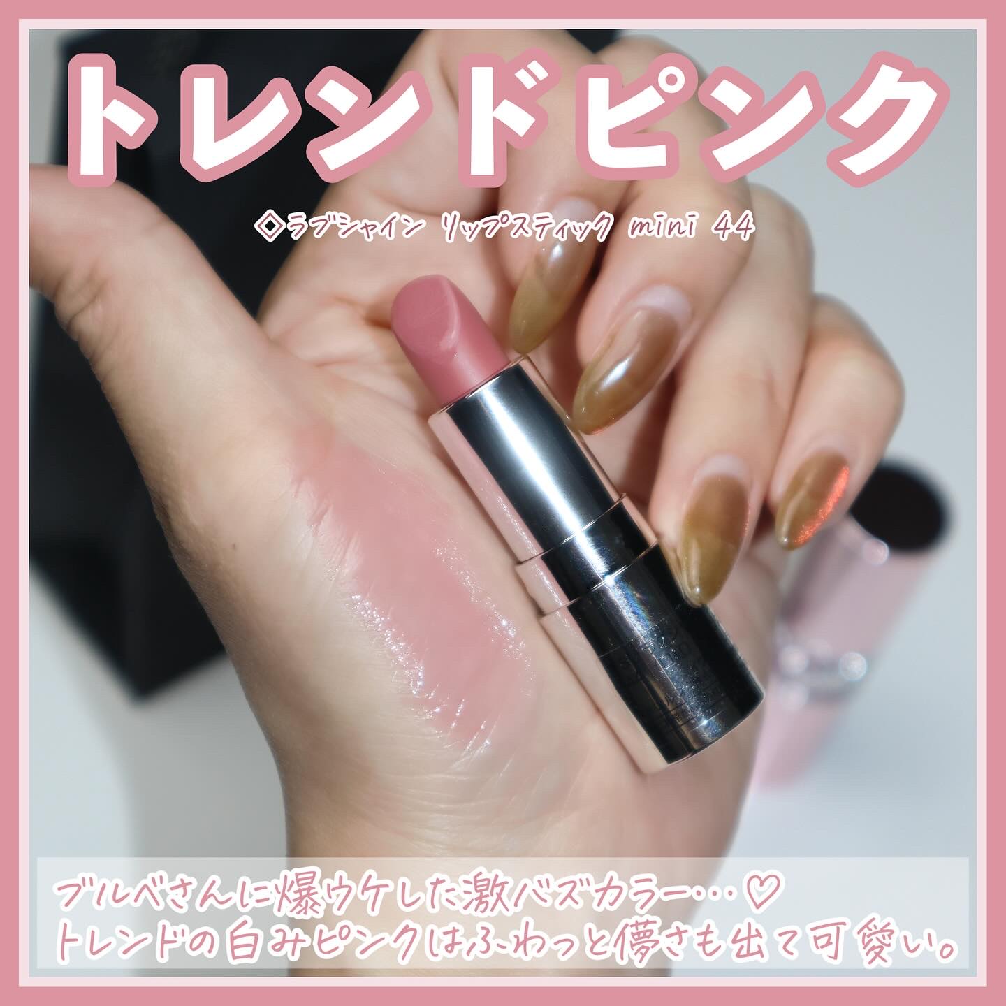これ、ジェル状のハイライトなんだけど 肌にのせるとツヤ感がめちゃくちゃ綺麗で 一気に抜け感&色っぽさUP。 顔に使うのももちろん可愛いんだけど… 夏なのでね。デコルテが出る服の時は 鎖骨にのせるとモテ感爆発します💥 耳たぶにちょんっとつけても 本当可愛いのでコレも推し。 ちなみに保湿成分もたっぷり入ってるので 一石二鳥だよん♡ もち運びもしやすいコンパクトサイズなので お仕事終わりにちょんっとつけたり、 メイク直しに使ったりもう大活躍間違いなし。 しかもこのクオリティで1200円。超優秀。