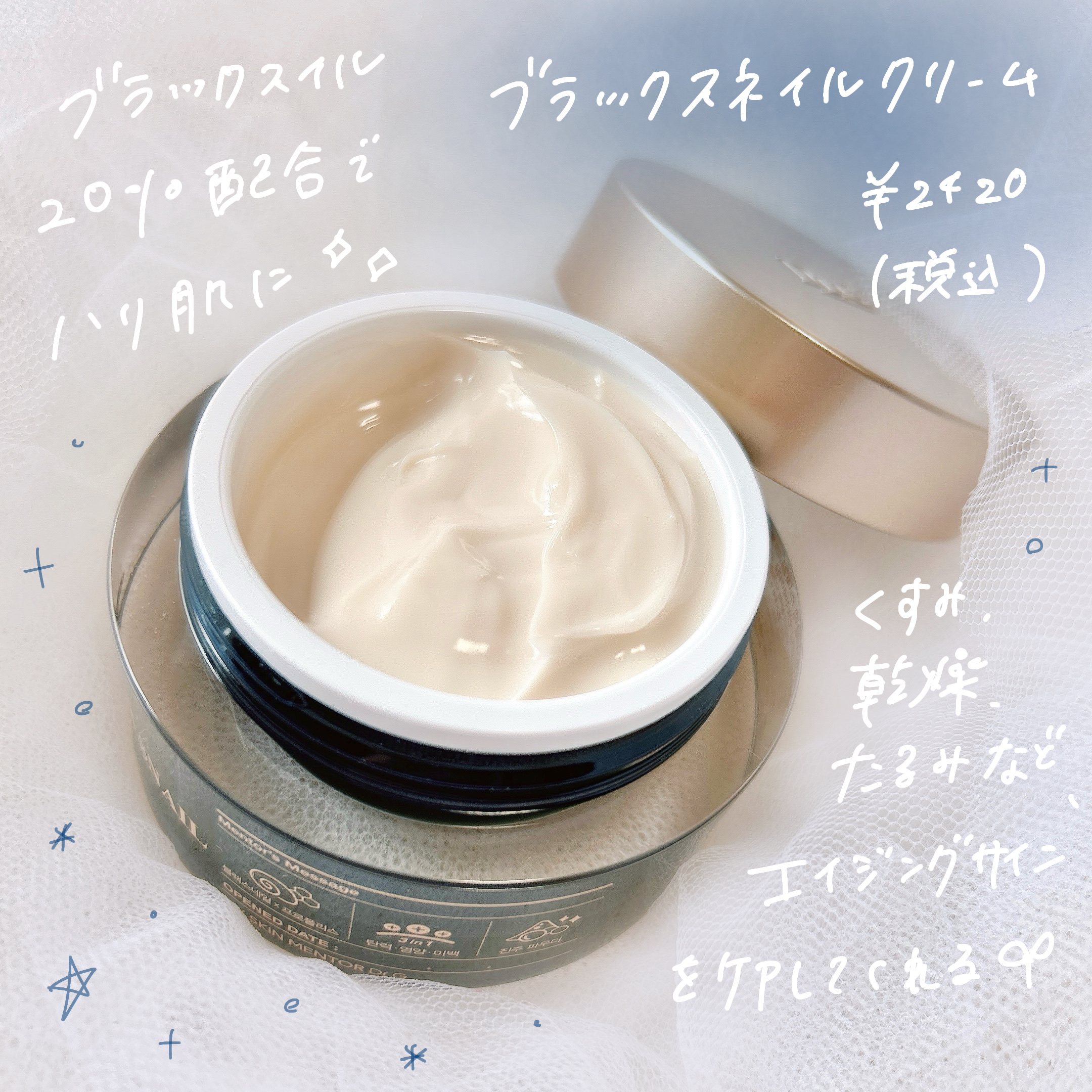 テクスチャー自体はかためなのにお肌への浸透はなめらか! ドクタージーがお肌のために考案した優れもの✨ 保湿だけでなく、美白、しわ、弾力対策にも✨ ブラックスネイルを20%&ブラックプロポリスが配合されていてアンチエイジングにぴったり🩷 ナイアシンアミドやツボクサエキスなども含まれています✨