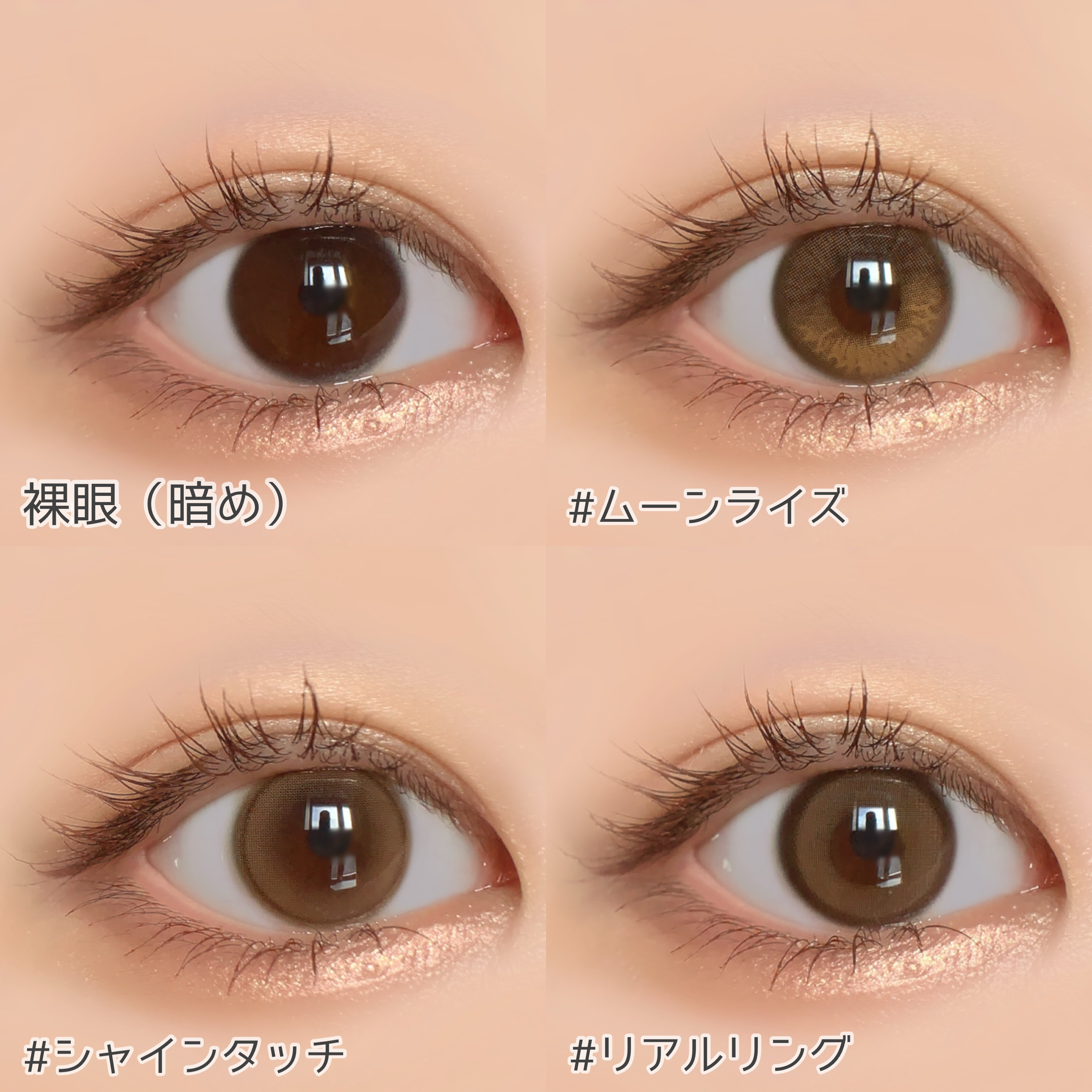 奥目さんは光を集め、目元を明るくさせるものがおすすめだよ✨ Real Ring 1day/BROWN ShineTouch 1day/MILKY BROWN Moonrise 1Month/FAWN BROWN アイシャドウ、涙袋は明るいカラー🌷 アイライン、マスカラもブラウンがおすすめ!🤎ྀི