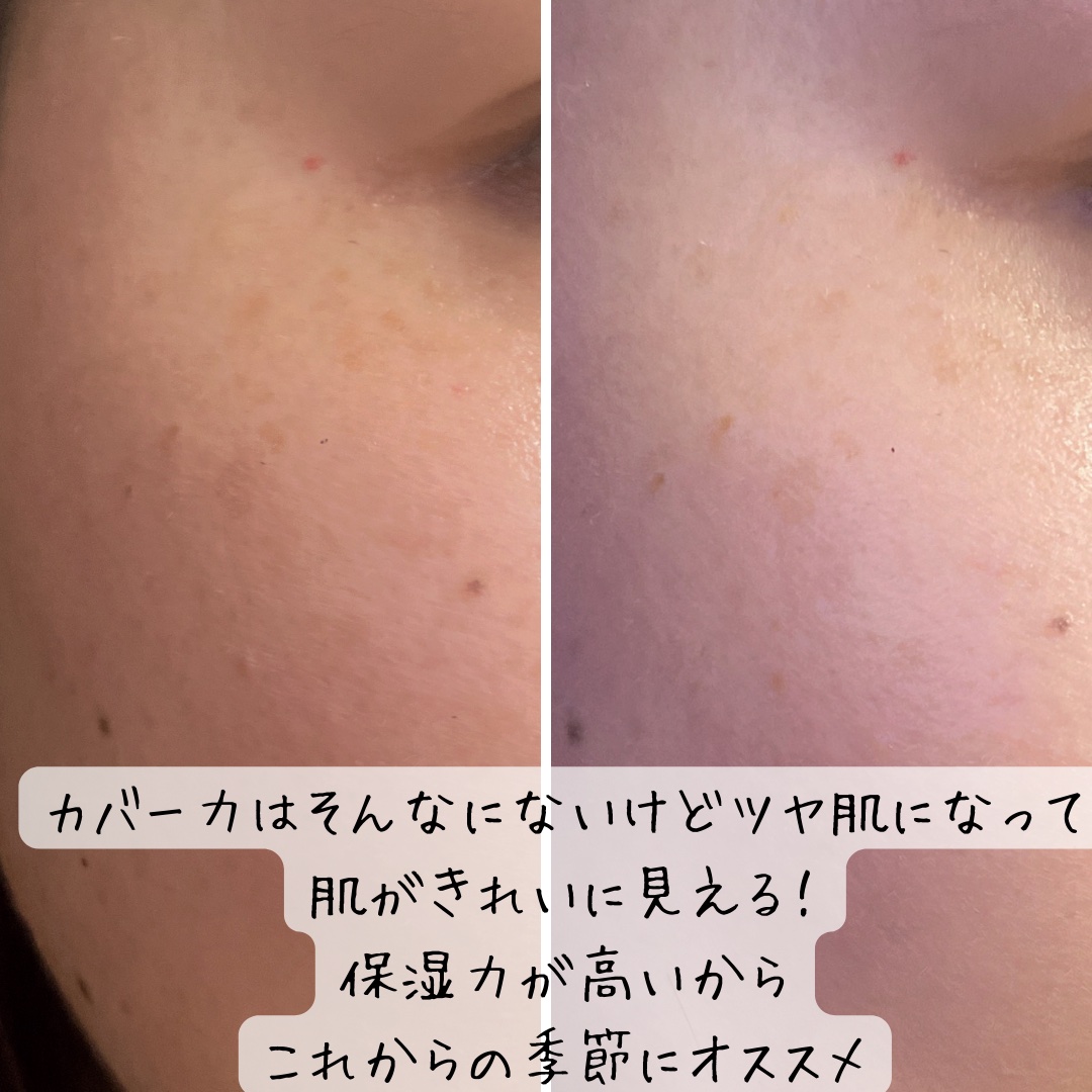 たっぷりとファンデーションが入っていて、肌にピタッと密着して、うるつやの肌にしてくれる🫶 肌に塗るビタミンB5、パンテノール 11,250ppm 配合✨乾燥を防いでくれる 軽いテクスチャーで重ね付けしても厚塗り感が出ずに、自然にカバーしてくれる🥰