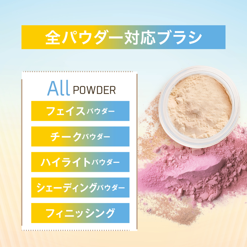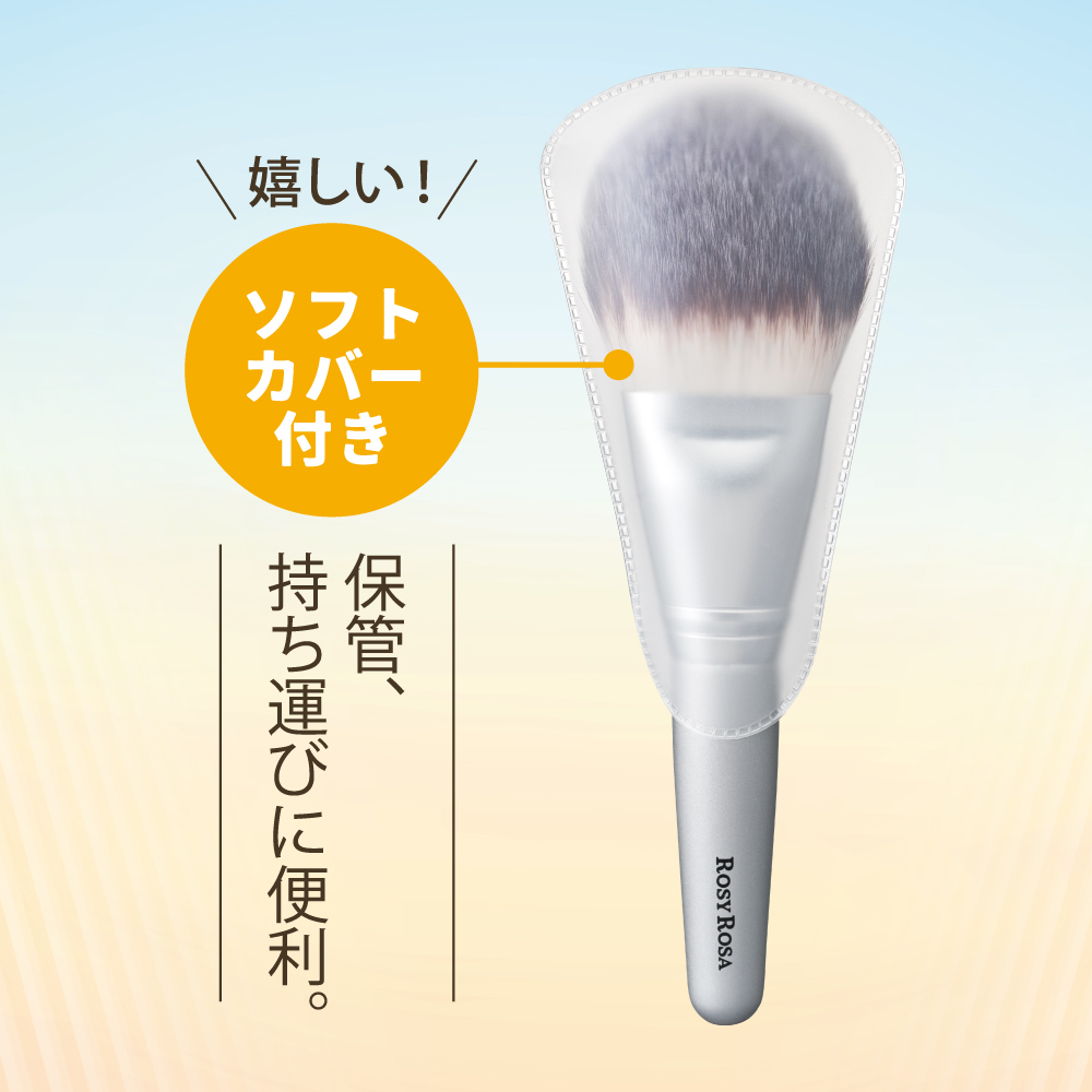 - 肌あたりなめらか、ふわっと自然に塗布できる全パウダーに対応するブラシ。 たっぷりの毛量が肌にやさしく沿って、顔の幅広面、骨格ラインにフィットする、塗りやすいファン(うちわ)型。保管や持ち運びにも嬉しいソフトカバー付き。 ●POINT● ブラシ側面:フェイスパウダー(プレスト/ルース)、チークパウダー、シェーディングパウダーにオススメ♬ ブラシ先端:ハイライト、ポイント使いに♬ブラシ部分にひと差し指を添え、薄い状態を固定すると細かい部分も塗りやすい!