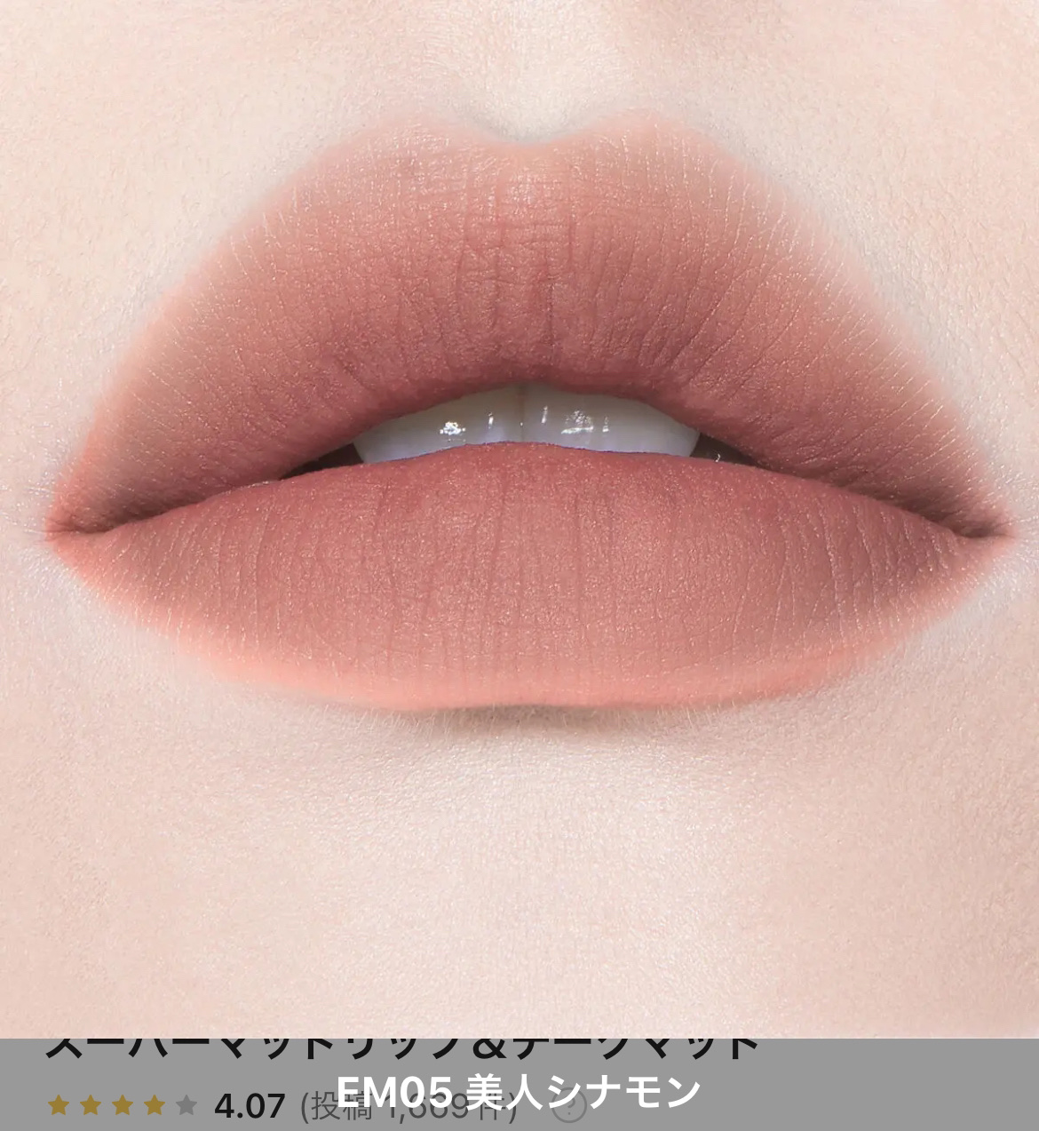 韓ドルみたいな立体感のある唇になれるリップレシピをご紹介! INTO U スーパーマットリップ&チークマッド EM05 美人シナモン ベースに塗る 特に似合いそうなPC:イエベ春🍑