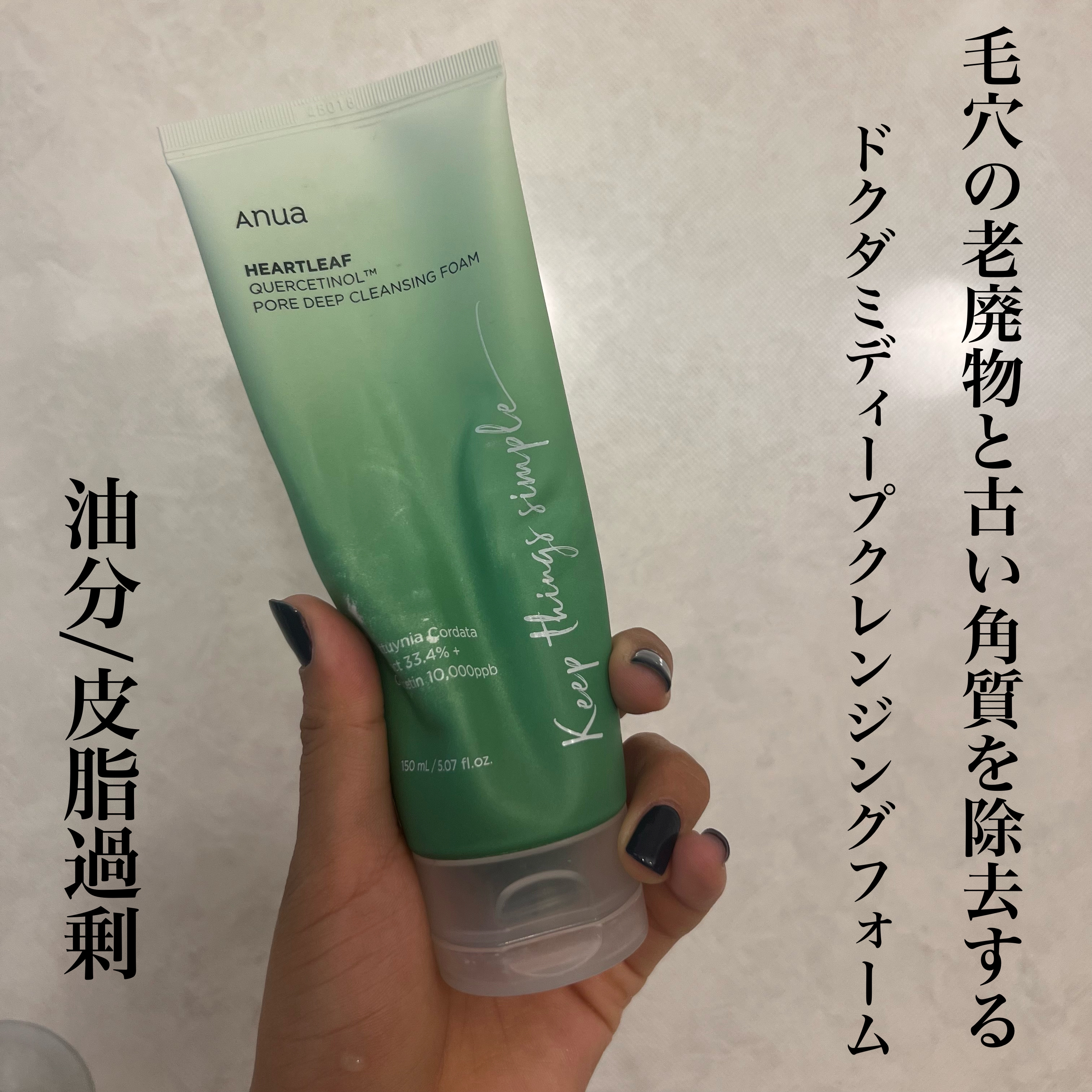 Anuaドクダミポアディープクレンジングフォーム朝用の洗顔として最近使っています☀️ドクダミ由来の顆粒が入っていて、本当に優しいスクラブ洗顔のような感じです。くるくると優しく撫でながら洗っています。私が洗顔のときに気をつけていることは【1】擦...