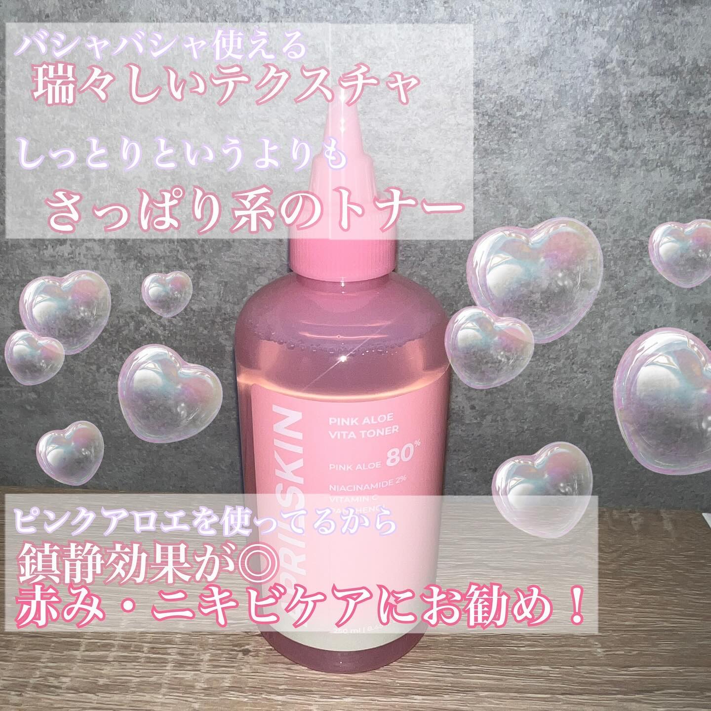 ピンクアロエビタトナーはトラブル肌のために作られたさっぱり系トラブル鎮静トナー。 鎮静効果がより高いピンクアロエが80%配合! 拭き取り化粧水としてもクールダウンパックとしても使えるから肌の水分補給をして急速に鎮静が期待できるよ! ほんのりピンクのトナーで、さらっとしたテクスチャー! 塗るとぐんぐん浸透して乾燥してつっぱったも吸いつくようなもっちり肌に✨